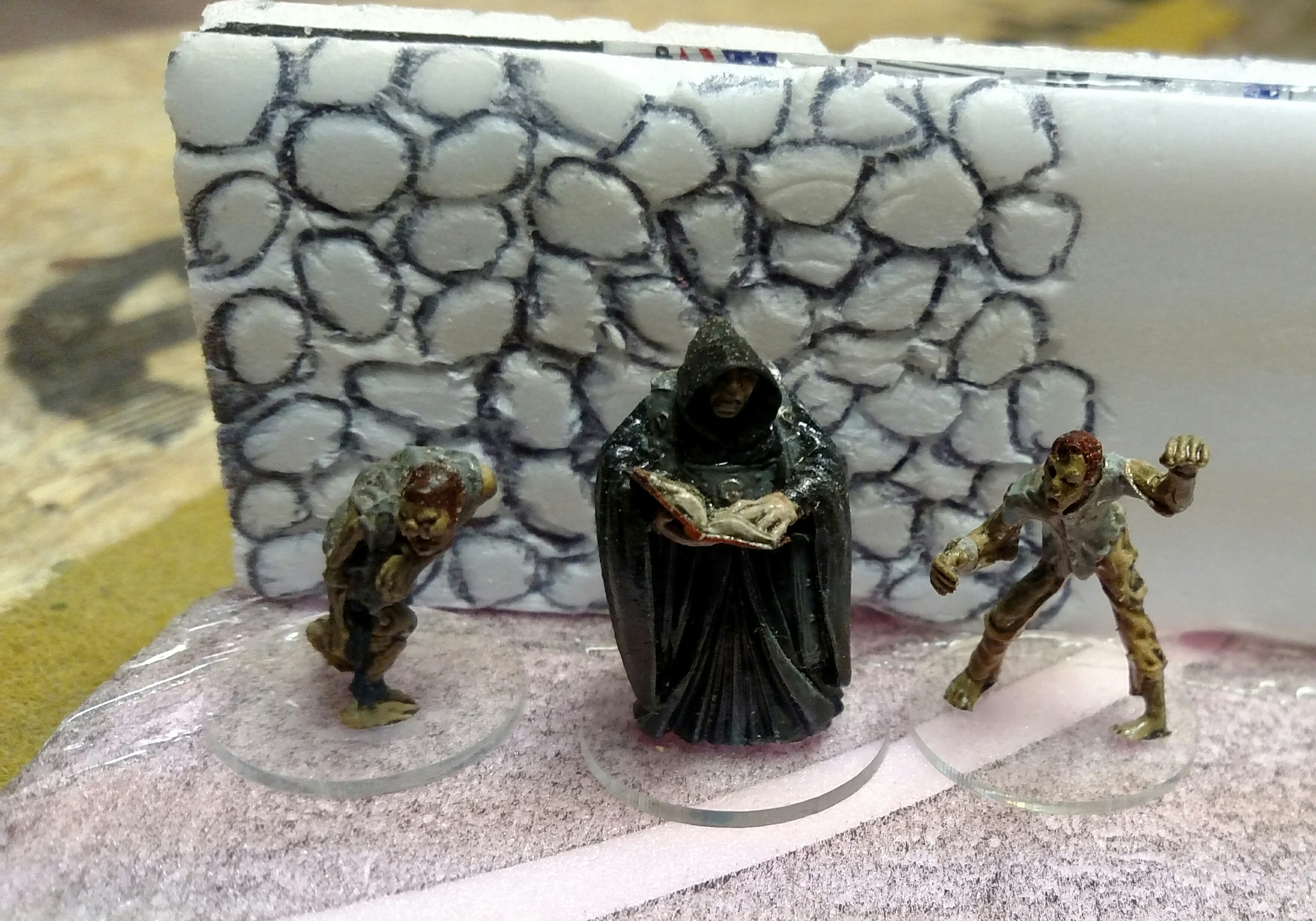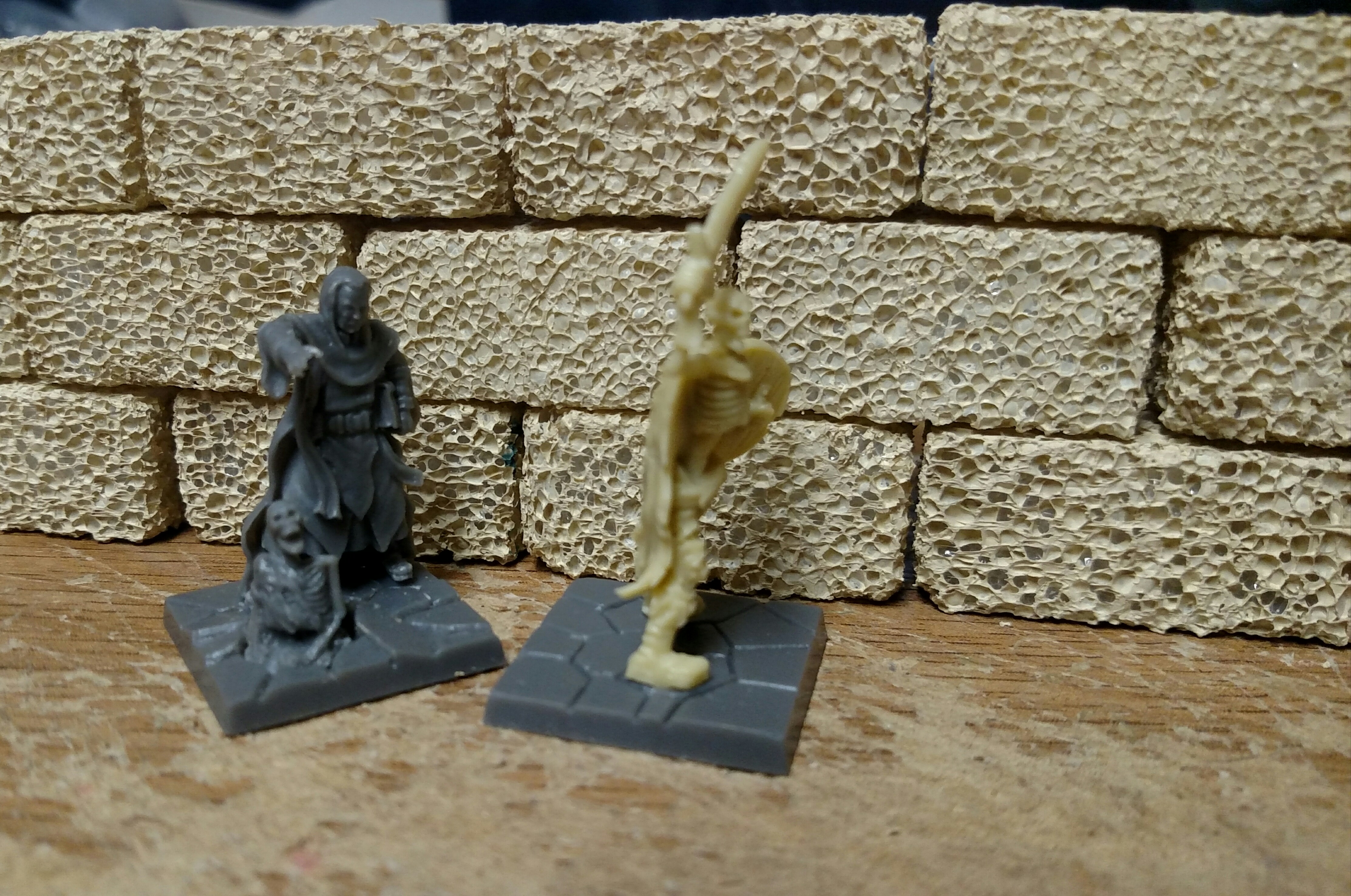 GrimDork wrote: A little proof of concept for dungeon walls. Two sheets of foam core glued together with the paper removed from the outsides. Hot glued to insulation foam. It works, there's a little melting but the double paper center helps the wall not disintegrate, and using just enough keeps the floor from going away. Reinforce with white glue probably. Neither texture is sustainable in terms of effort. Ill have to make a stamp or something.