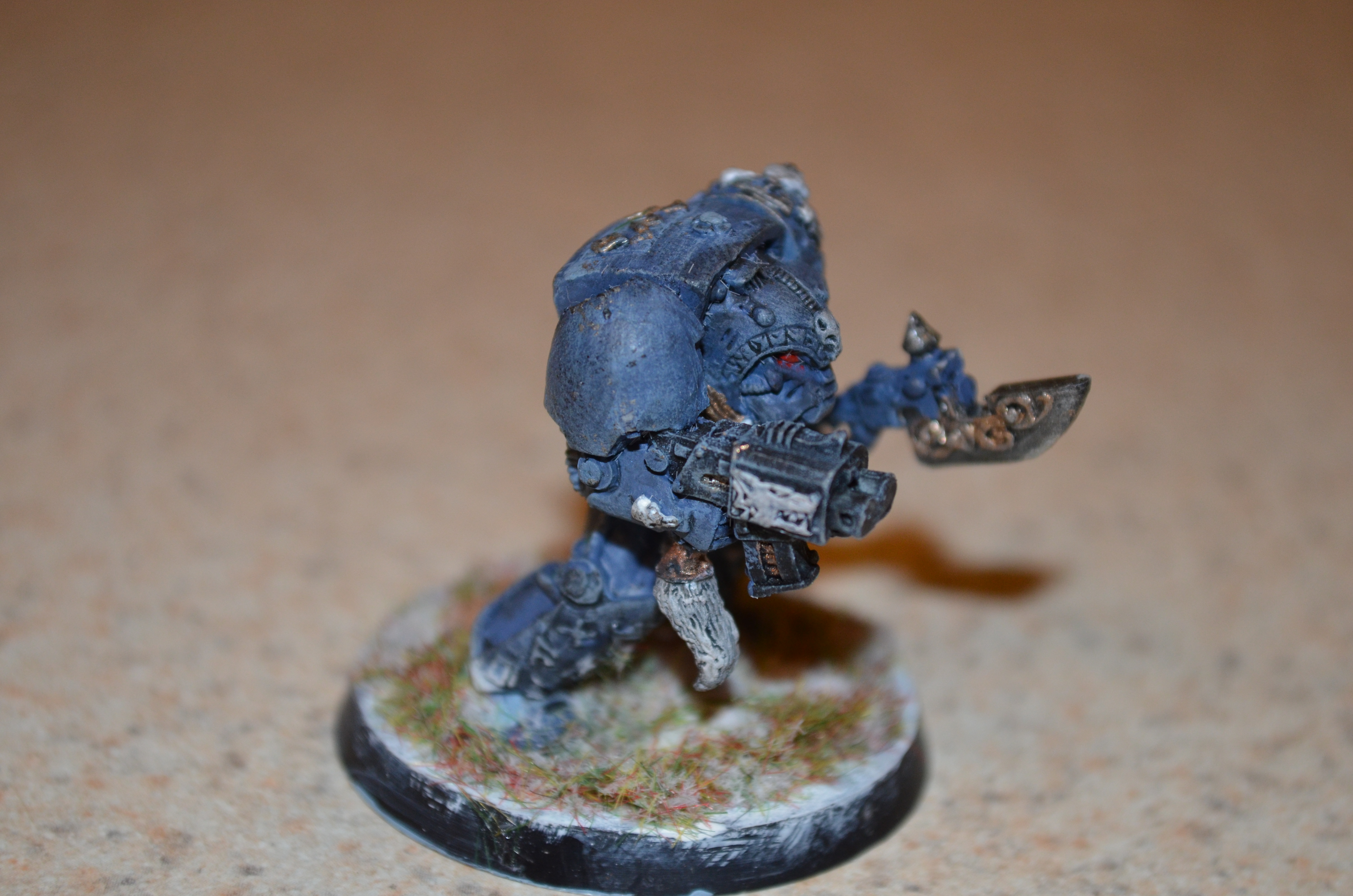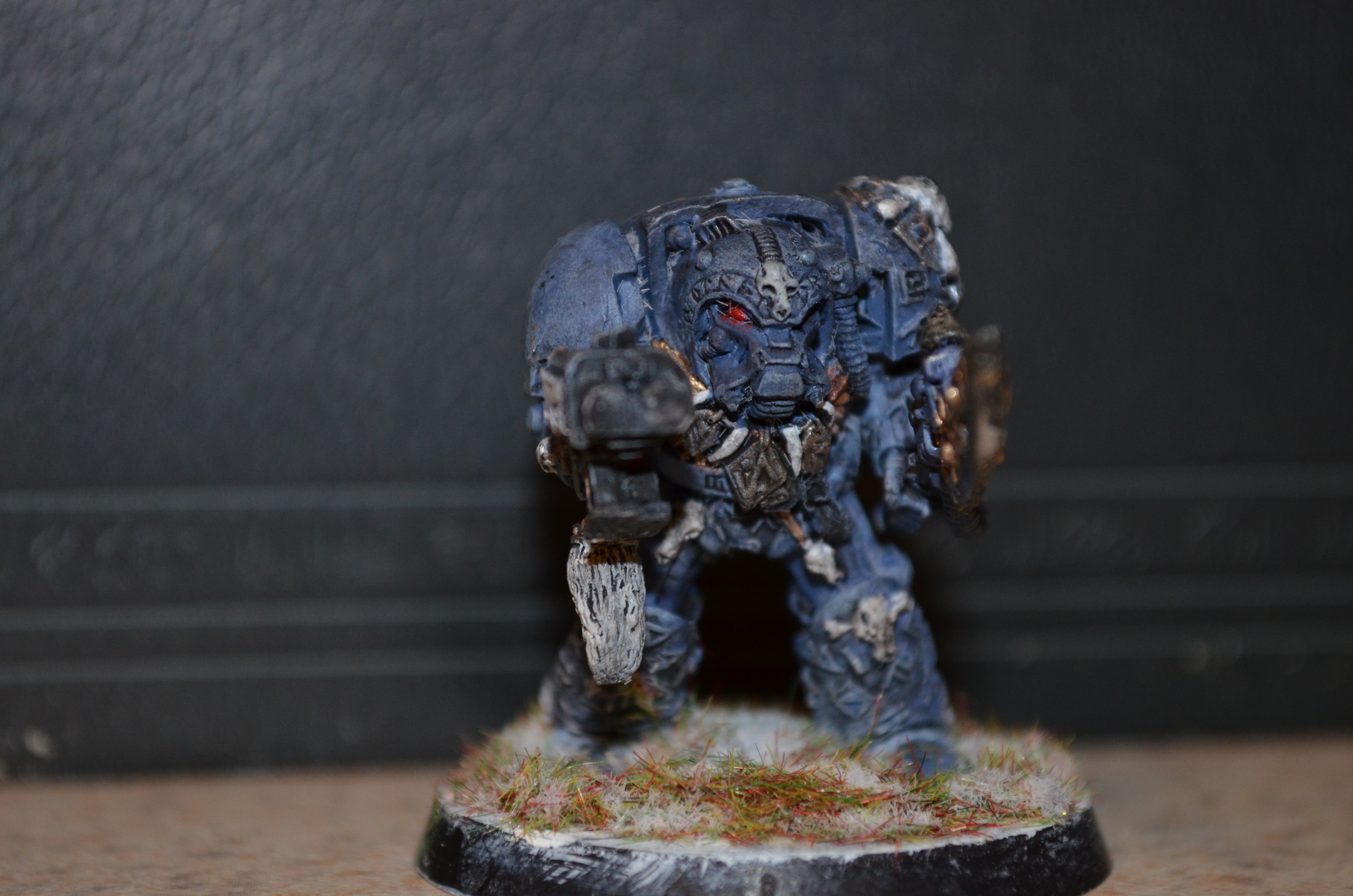 This is my first submission on here, please be honest and open with opinions and tips. I really want to get better at painting. This is a rune priest in terminator armor. I used a black spray primer, the fang gray base, then a few layers of washing with citadel oil black wash and longbeards gray dry brushing. Detail work done with an enamel gold and scar white for the white details. Basing was static grass flock and citadel snow layered. Please let me know what you think and what to improve, thank you.