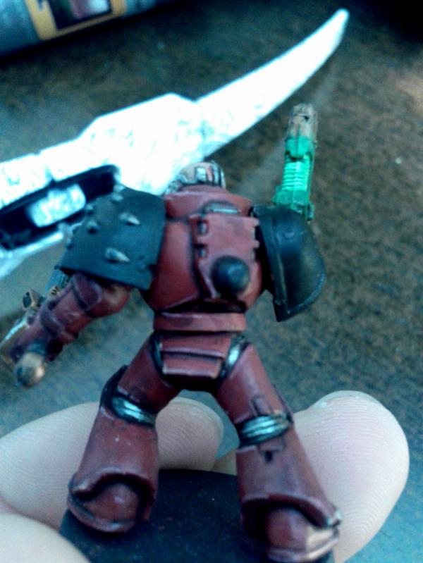 Knife blades are the way to go with mold lines. And normally some orange or a brighter red is used to highlight the armour (the bleached bone makes it look vaguely pink). Also, is that a bit of OSL on the plasma pistol and shoulder pad?
