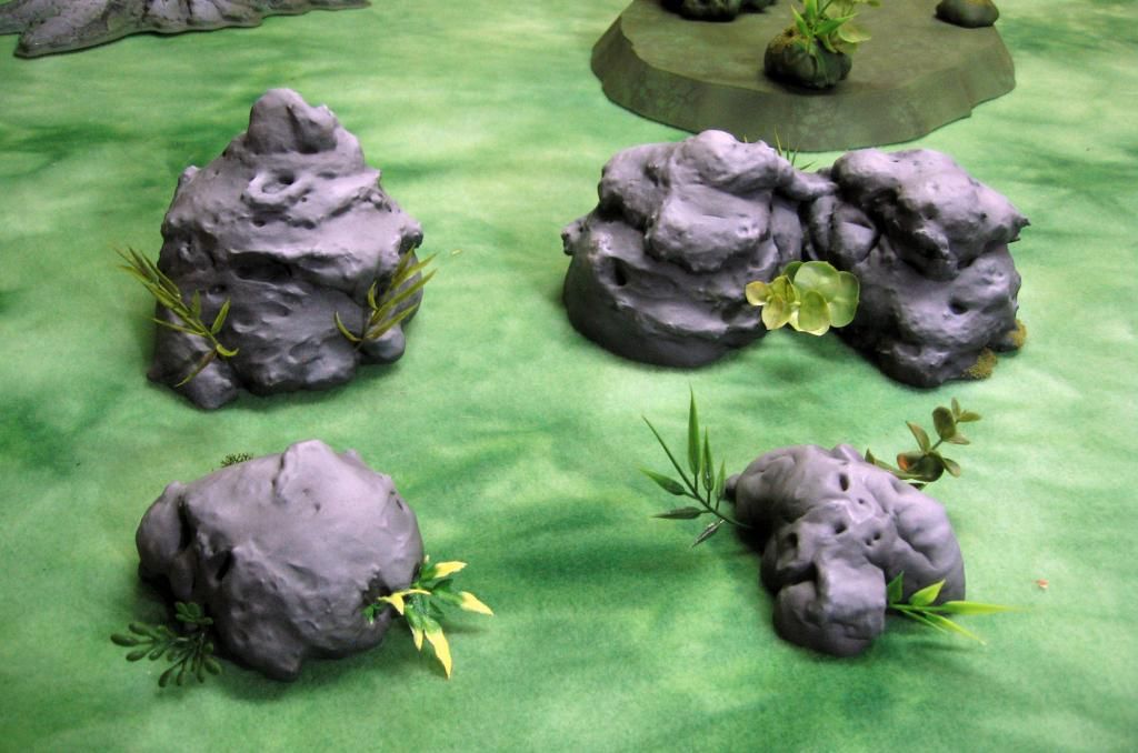 Two of the rocks are smaller, but still large enough to conceal a 28mm scale infantry model. Two rocks are large enough to conceal a transport from the some angles.