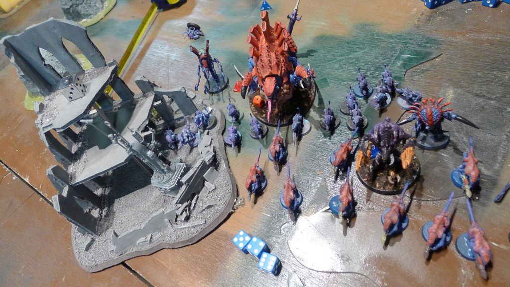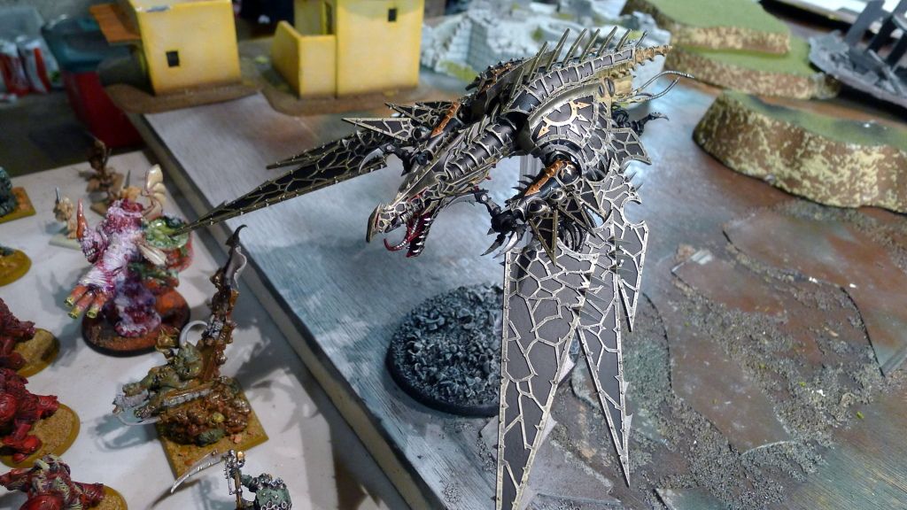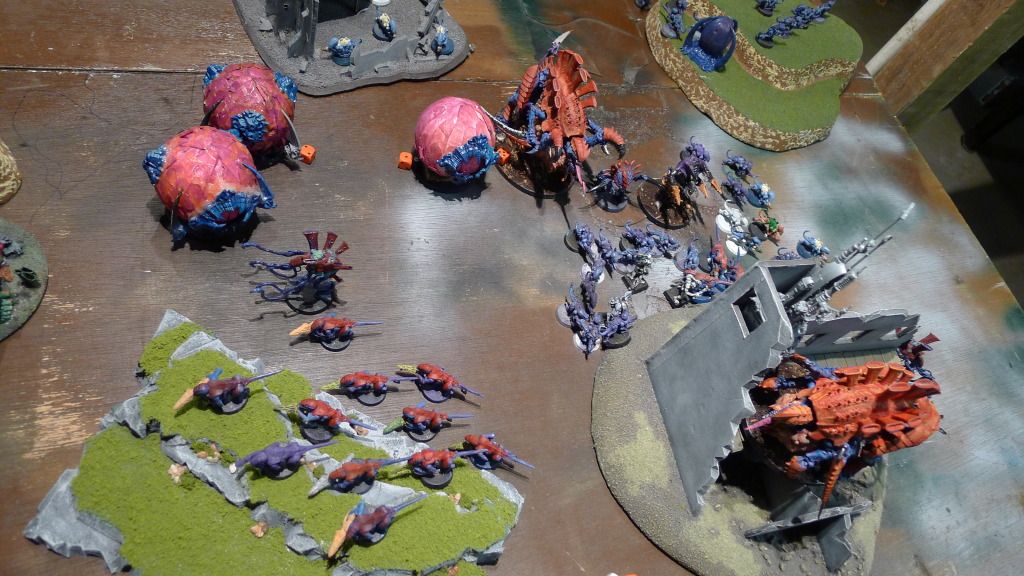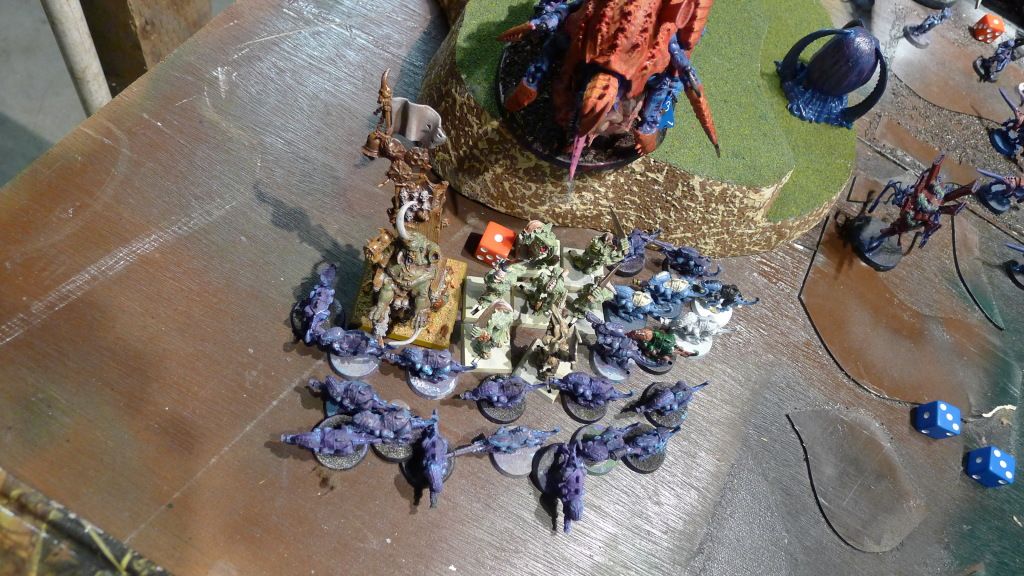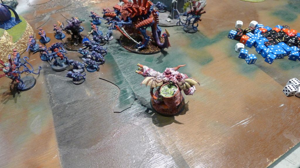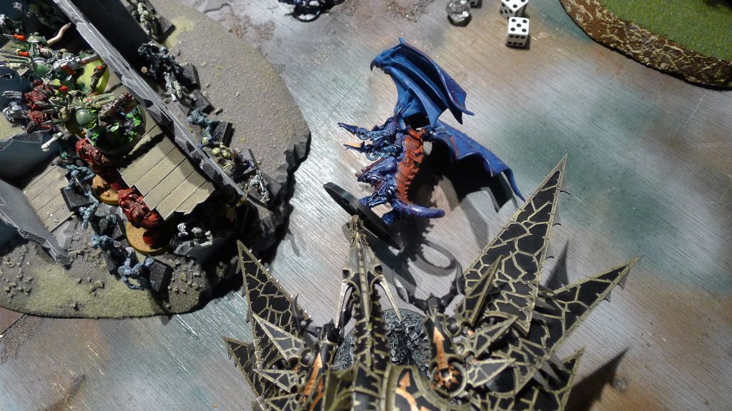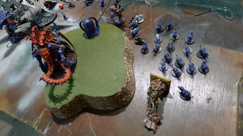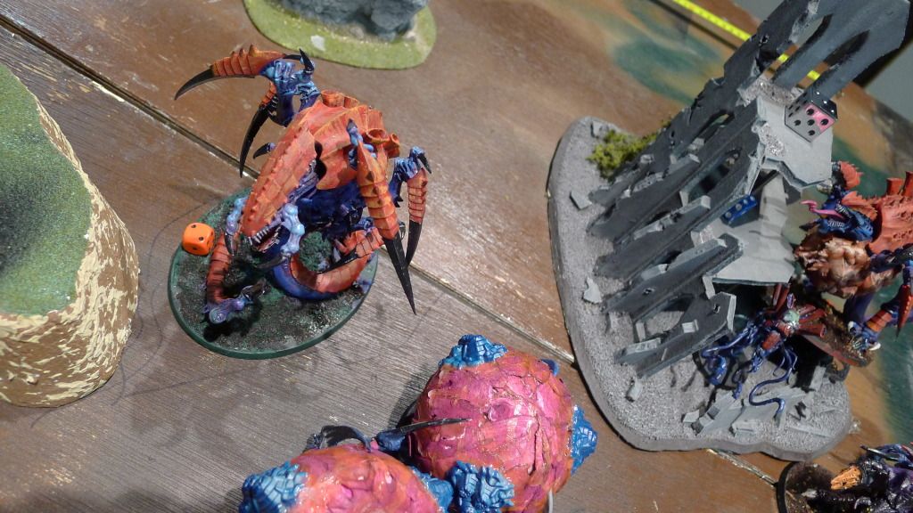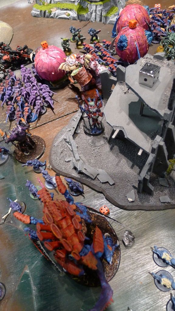 Killing those 2 flyrants made it somewhat easier to bear, and now my opponent does not have anything that can really hurt my heldrake. Now I just have to deal with 2 tervigons, 1 trygon, his Warlord and a lot of gants.