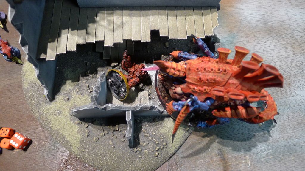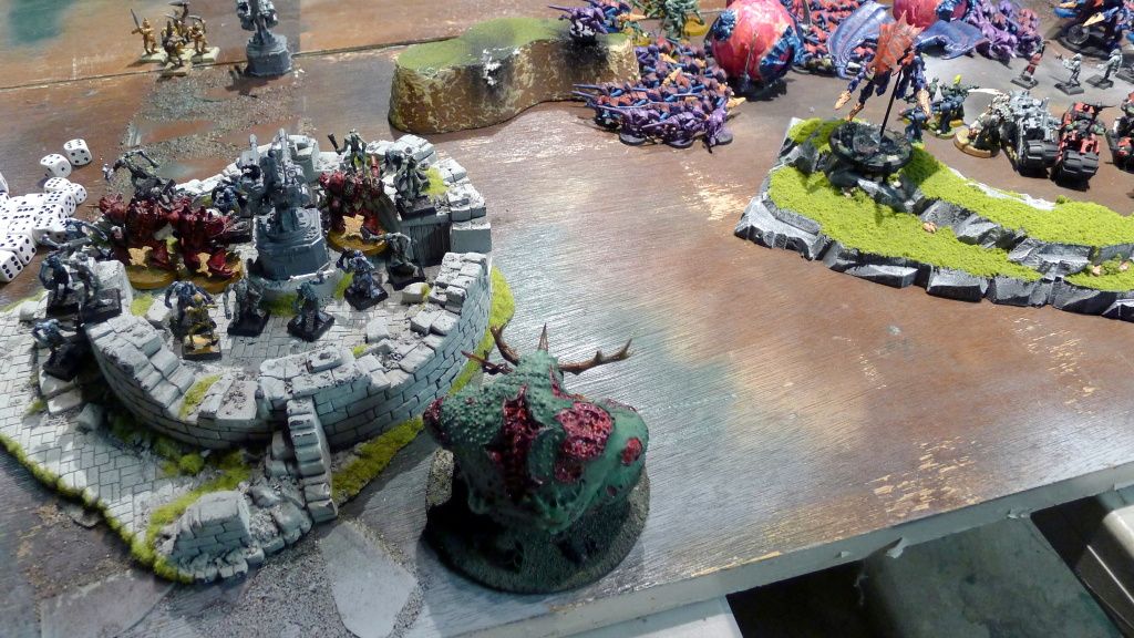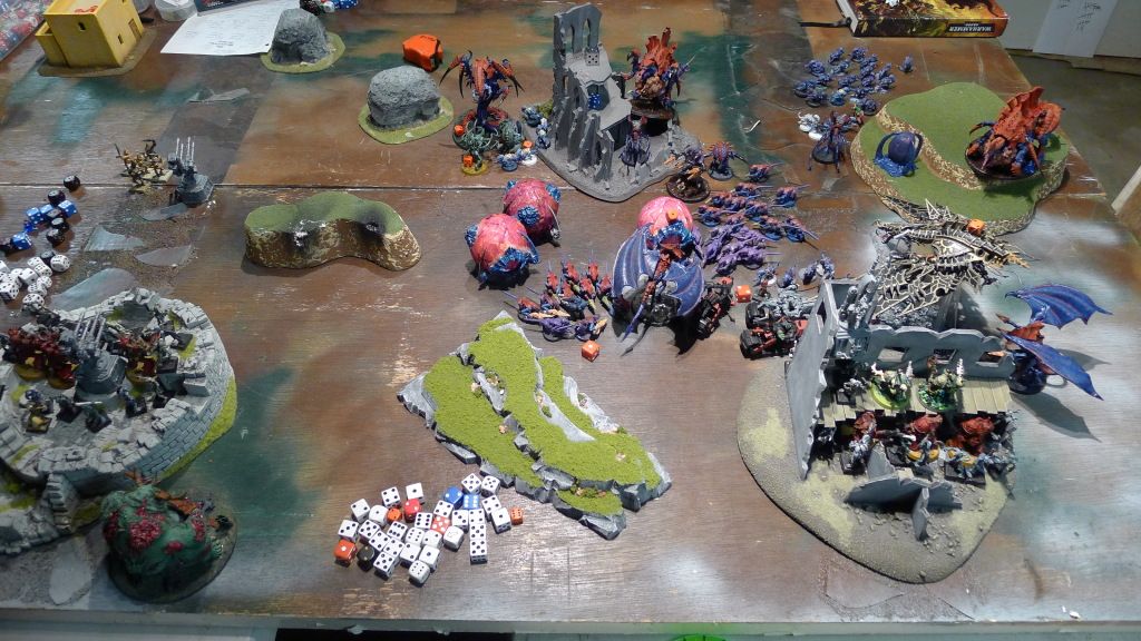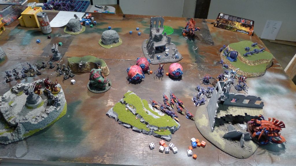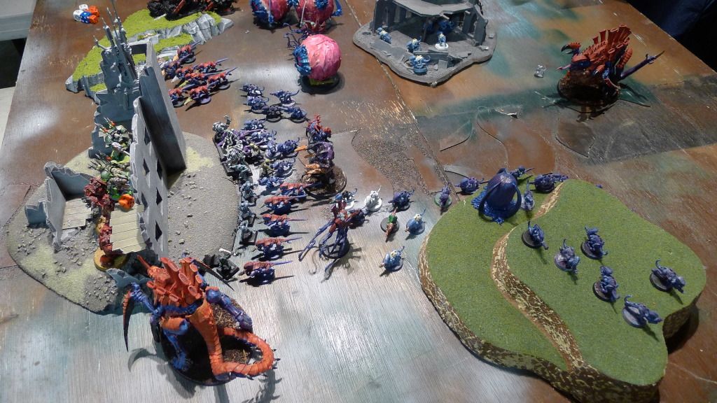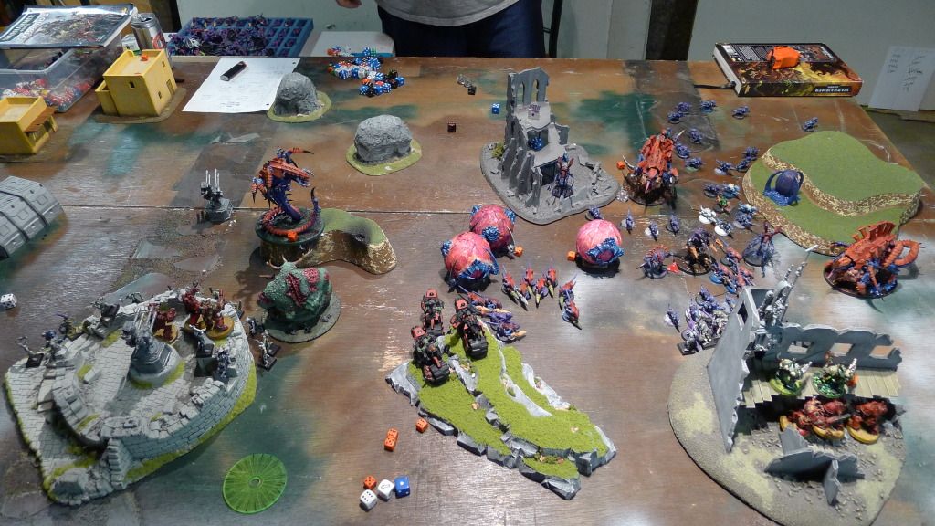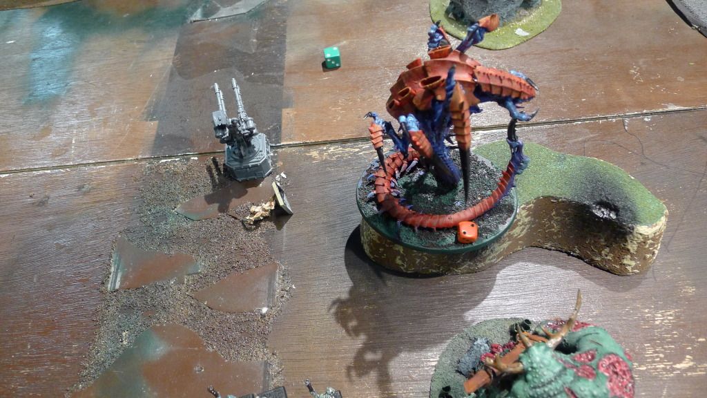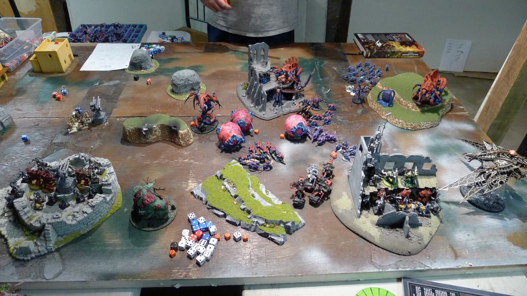 Killing those 2 flyrants made it somewhat easier to bear, and now my opponent does not have anything that can really hurt my heldrake. Now I just have to deal with 2 tervigons, 1 trygon, his Warlord and a lot of gants.