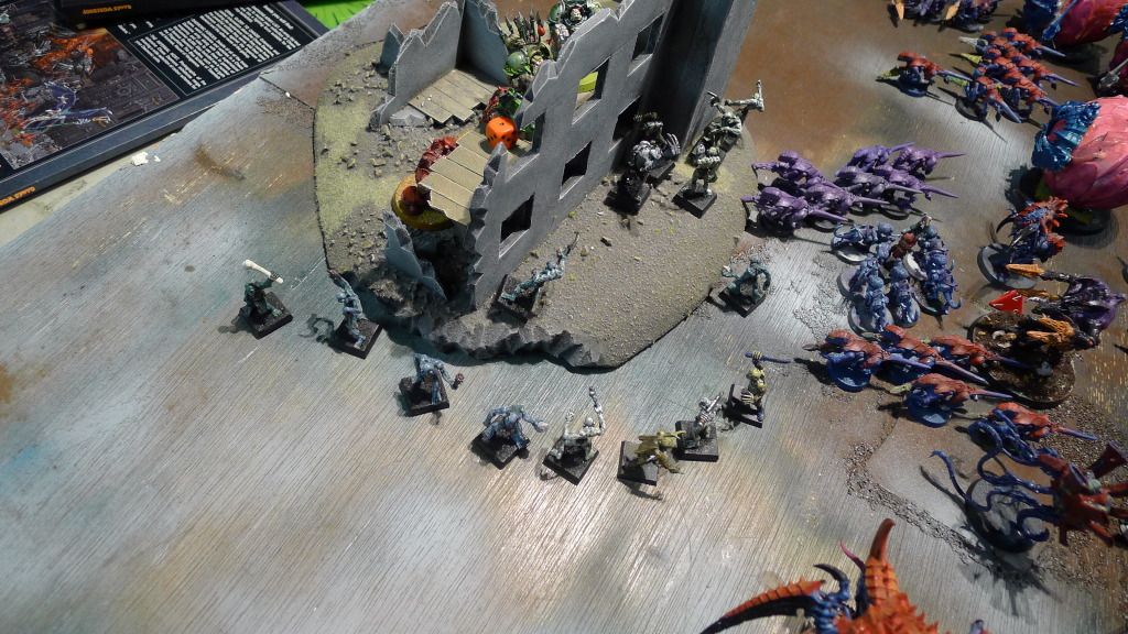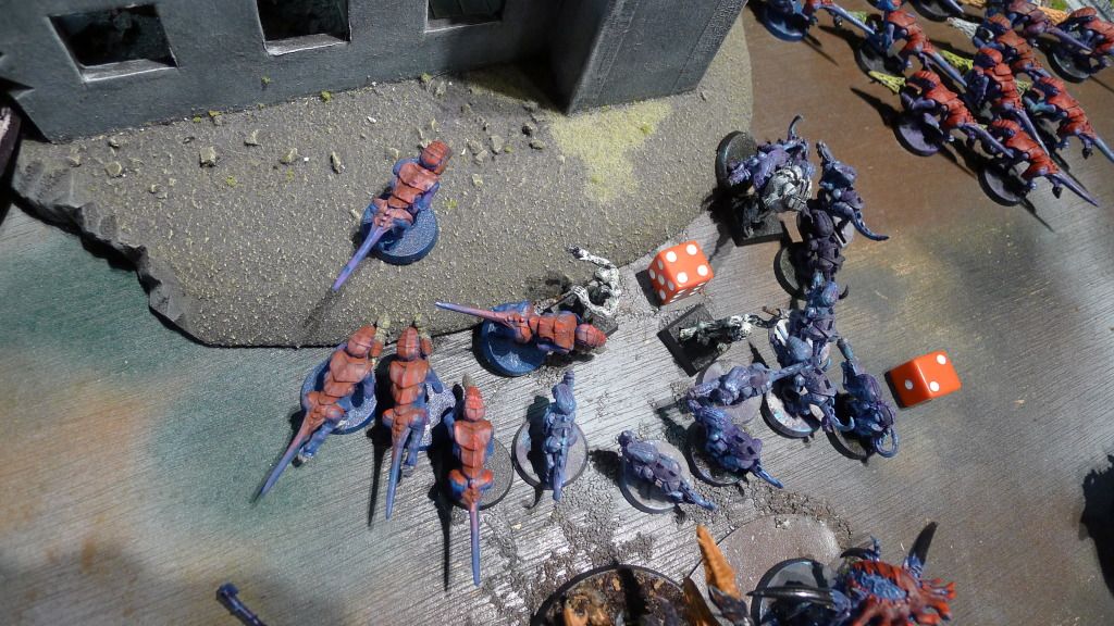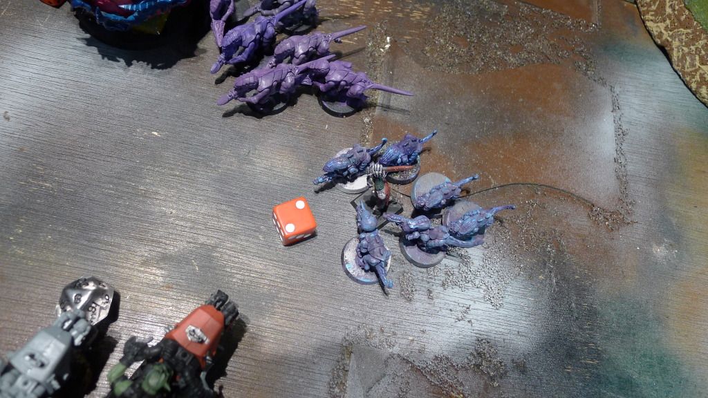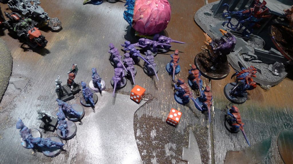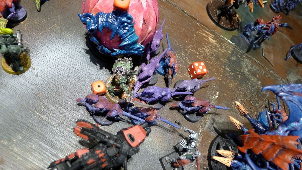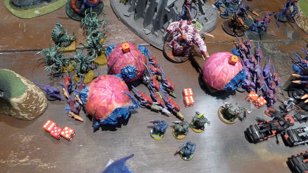 Oblits finally shoot down one of the tervigons. The explosion takes out 3 gants.