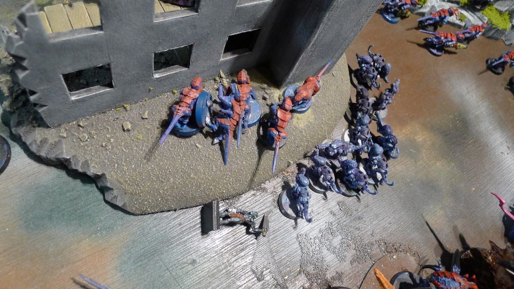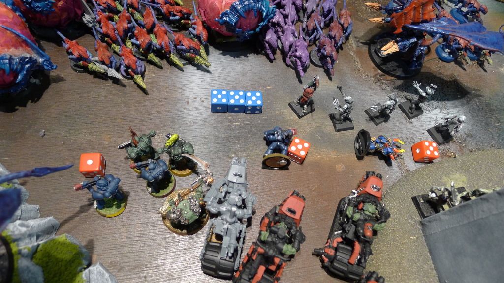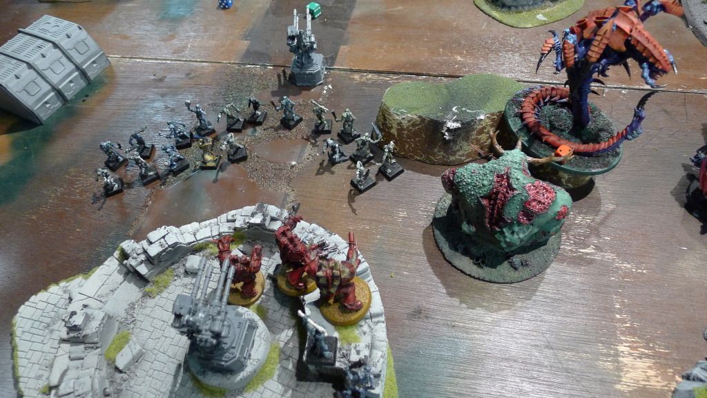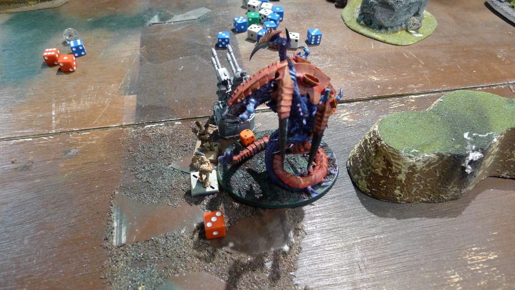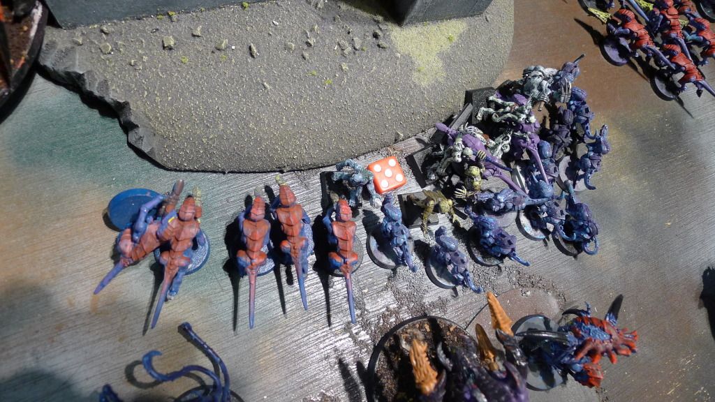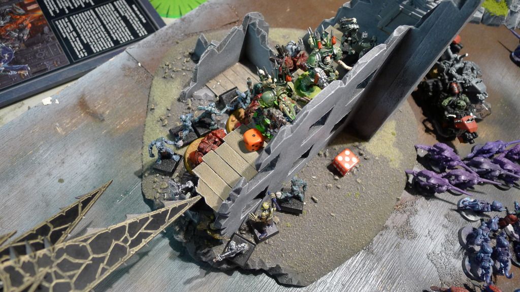 Oblits finally shoot down one of the tervigons. The explosion takes out 3 gants.