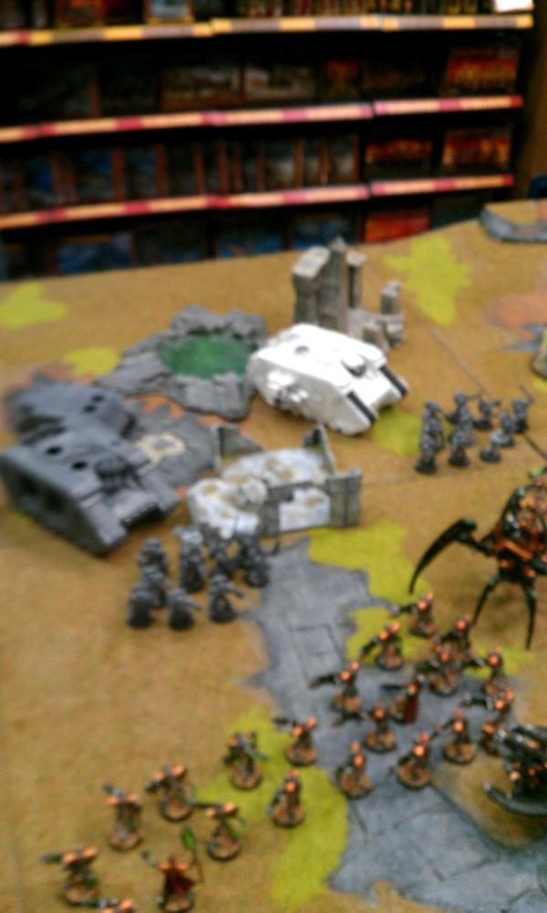 “Warriors….focus your fire on the land raider” Says Teletrix, leading a host of 20 warriors.