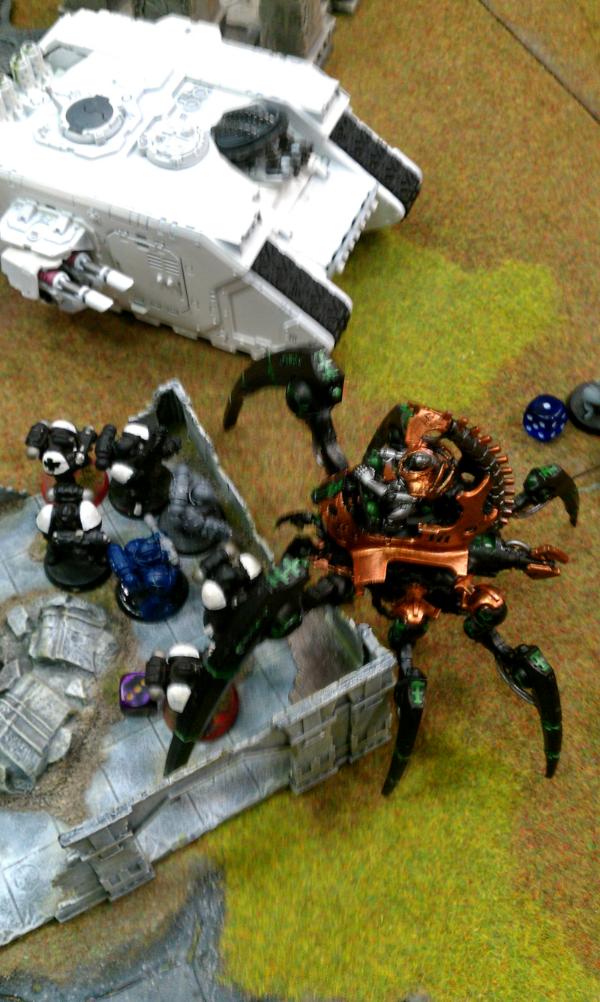 The Triarch stalker hauls off after the Templars, charging into their lines, and sowing death.