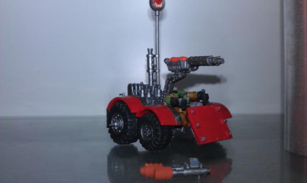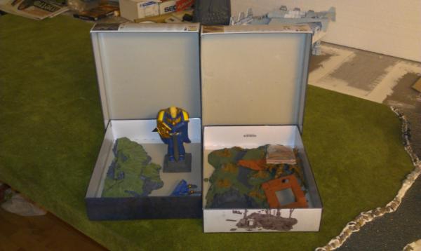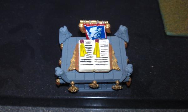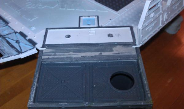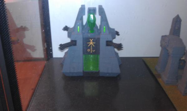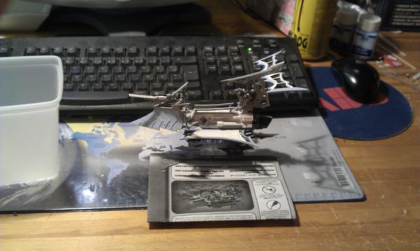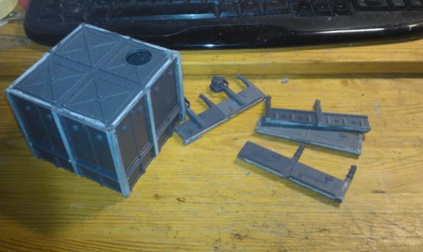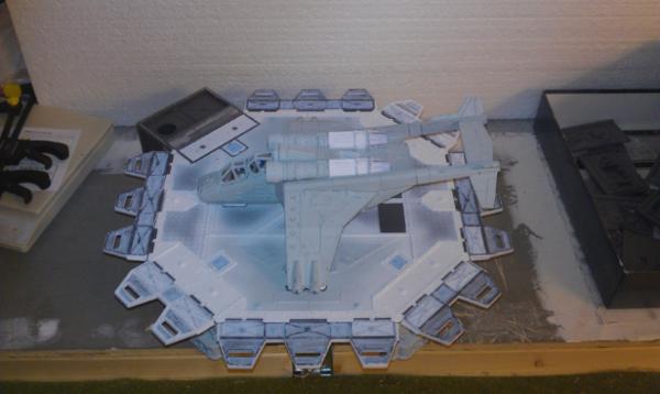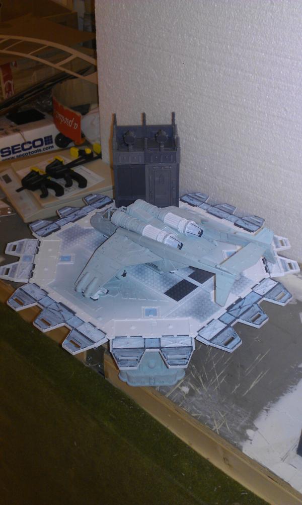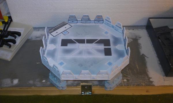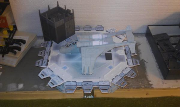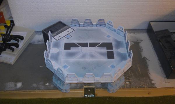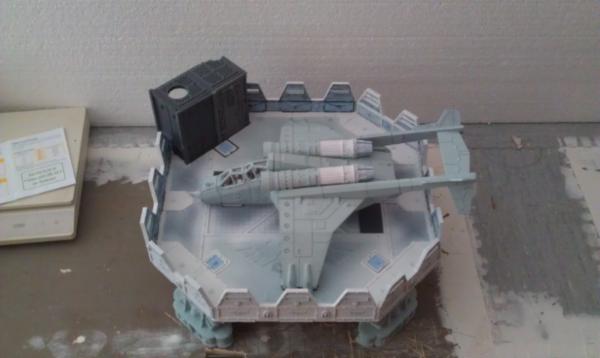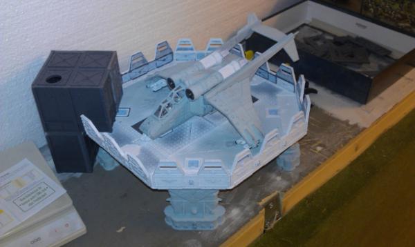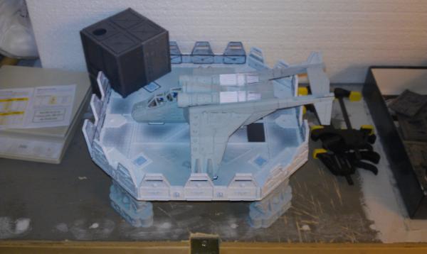 OK, here goes. So after some months laying idle on top of my closet and another few weeks in my paint box i finally decided it was time to put together my Skyshield pad. So i started gluing tie sides on and wen i came down to the the last peas i was one component short  . After getting a firm no, from all places i could think of that sole bits parts. I took drastic measures thou a lot of over bending i manage to get one corner of, so out whit my sharp knife. After some delicate cutting i managed to get one peas of to glue on to the remaining side. And after an inspiration from another Dakka member woala an observation platform.