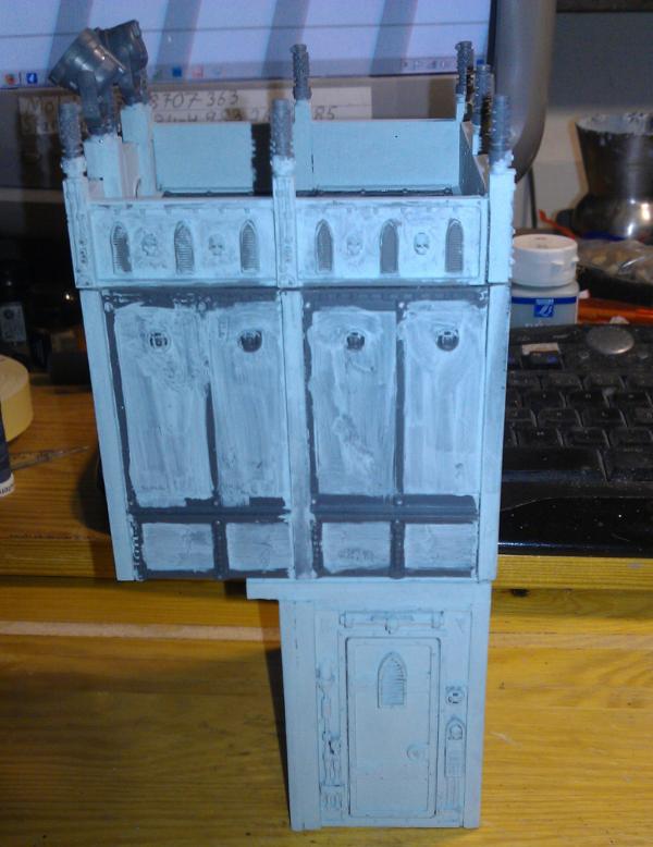 Nice idea and good way to cover up the missing section. Good work thus far, look farward to see what you do next (either more bits or painting  )
