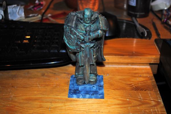 OK, so i was a god little monkey for a year. And as my first Re-dux model i made a bronze statue out of my Space marine soldier.