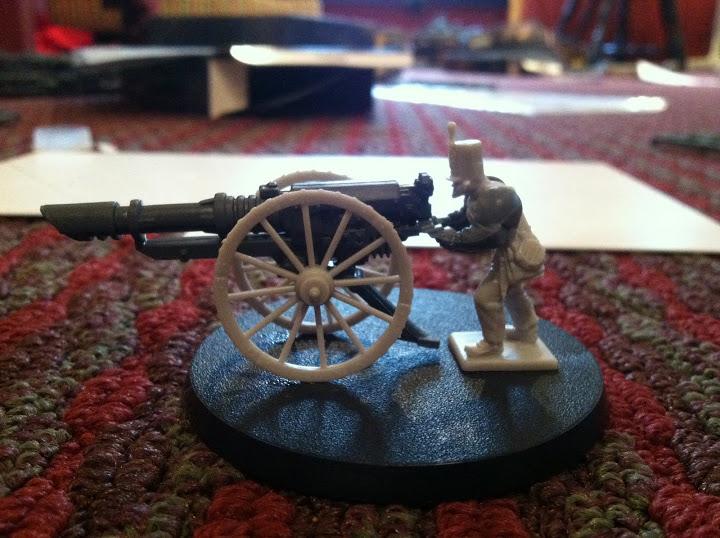 NIce idea, but i don't think the Napoleonic stuff fits very well with the GW bits. The scale difference is just too great. They all look like they have gorilla arms =(