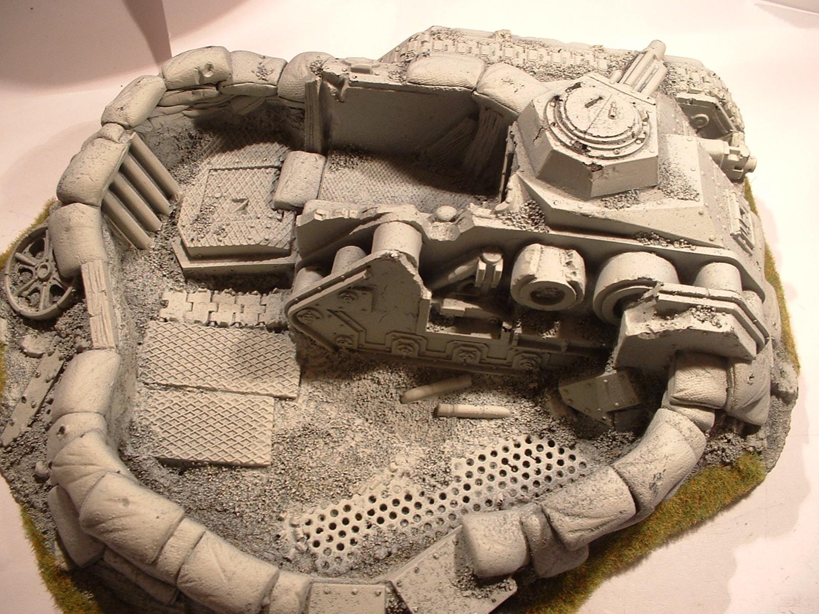 I'm going to have to check, but I think my gaming group may actually have the emplacement and broken chimera in our collection of terrain. I know my old FLGS used to have the emplacement, and I think we snapped it up when they shut down a few years back. Edit: Yep, we have the two pieces in our collection, both made out of lightweight foam.