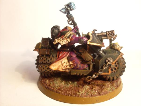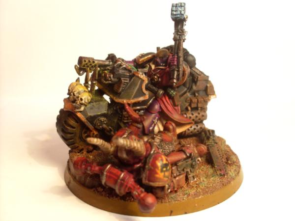 I find it so had to take the photo as thre is 2 points of view from the commander and the chaos marine. I can try and get a good picture of the bike but the Chaos guy is in a bad position for the photo, or I could get a good picture of the chaos marine but then the bike doesnt look right.