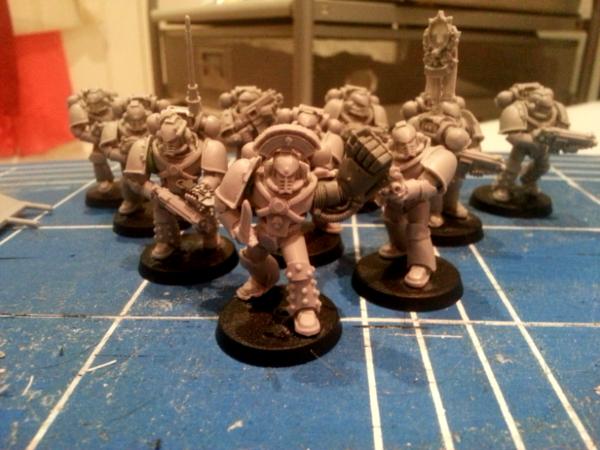 So I decided to just make all my guys tactical marines, for now. Still waiting on my contemptor to arrive, and when the Justaerin terminator bitz end up on ebay I'll make my HQ followed by a squad of terminators.