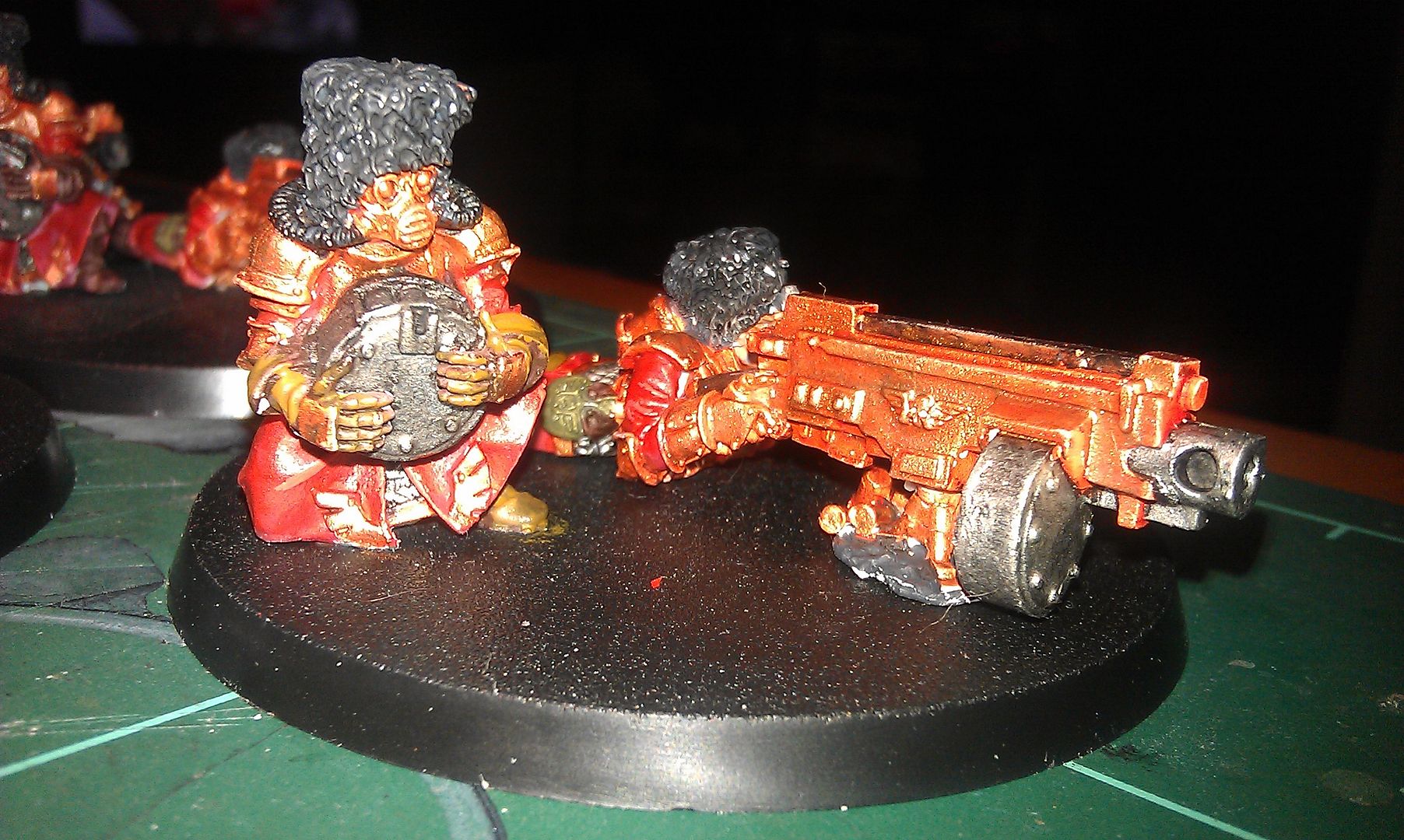 I painted up a Vostoryan HQ using Dwarf bronze and they came out like this