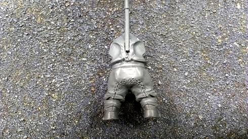 First up is the initial position of the banner. I chose to attach it in the back instead of the usual hand-held manner because the Brusier has to have his hands free to swing his massive great weapon. I figure these guys are fat enough that his back fat should pinch together well enough and hold a banner.