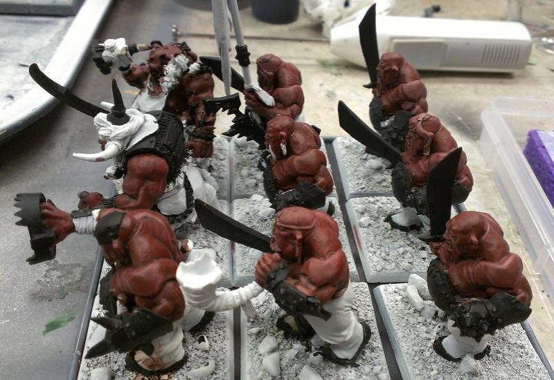 Other than that, I've been gap filling arm fat, as I said earlier. I'm almost done with all of that and my next conversion work for this army is scheduled to be either a couple of Butchers (using the extra heads from the Slaughtermaster) or a Flying Fat Boy (seated Firebelly on an Araby Carpet). The FFB requires the most extensive work so that'll probably be left for last.