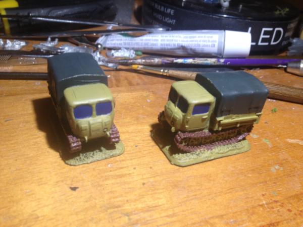 Pretty sure they just painted them up the same as the other vehicles in the company, at the very least they'd have a basecoat of Dunkelgelb.