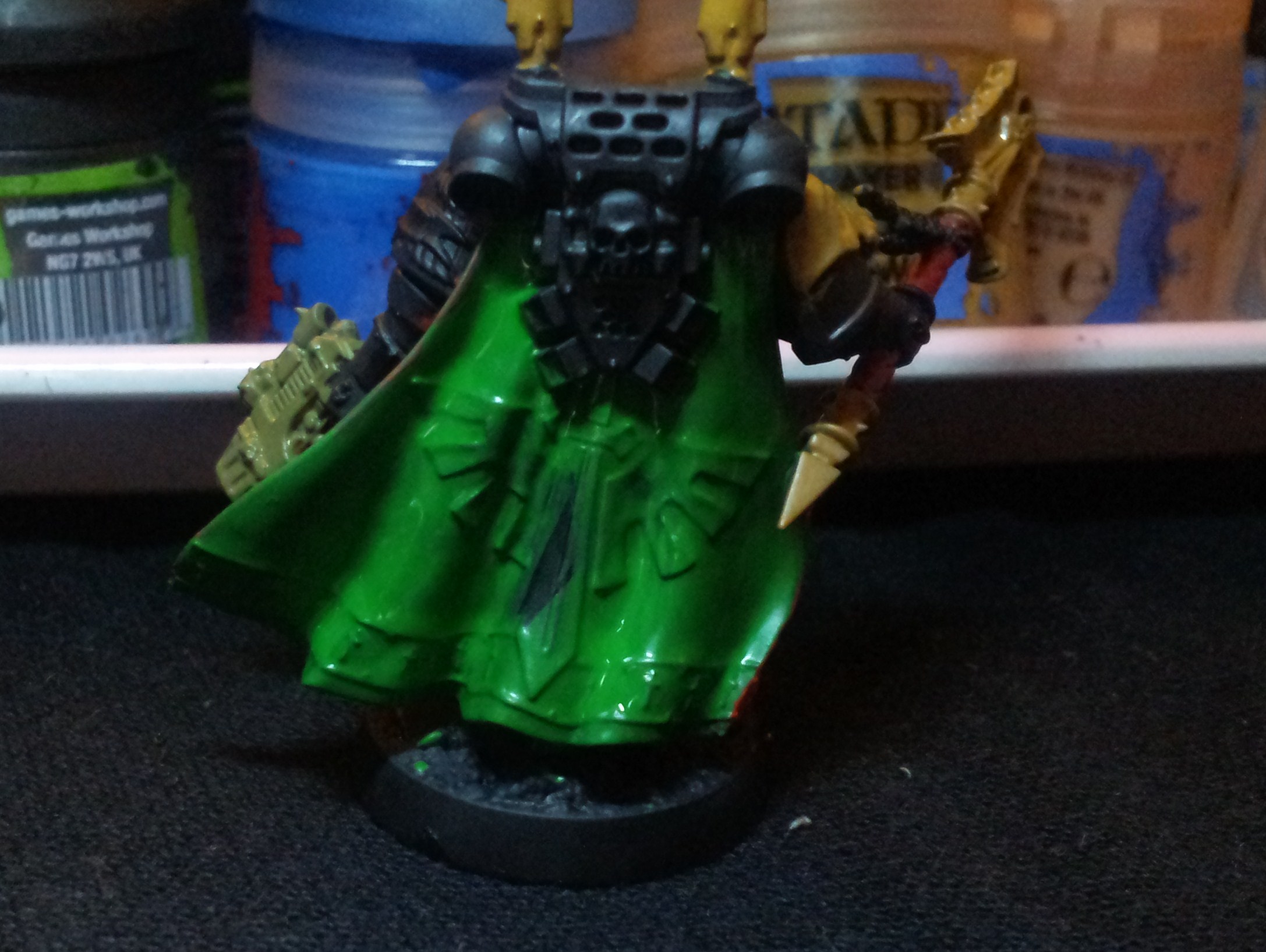 Several layers of Warpstone glow, painted evenly over all areas of the cloak.