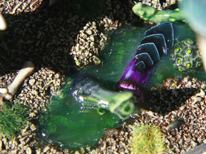 that might work on bigger bases... but for the gaunts i would keep your bases simple... then there is the question of what kind of base are you doing? just sand, urban rubble or tyranid infested grounds? i personally really like the tyranid infested theme. glue some cork to a base and run some white glue over and inbetween them. then add a few drops of superglue for awesome effects!