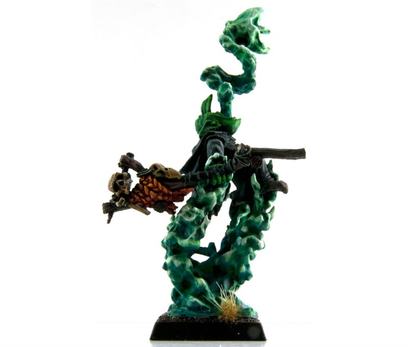 Night Goblin Shamans are sinister and crazed individuals, due to their consumption of huge quantities of the powerfully hallucinogenic fungus for which the Night Goblins are renowned. Their spells are malicious and spiteful, much like the Goblins themselves, and often accompanied by unnecessary additional effects such as puffs of oddly coloured smoke, obnoxious smells, and overly loud bangs.