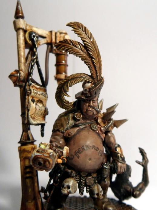 40k's equivalent of a sweet pimp hat. To reinforce the character's arrogance and the way in which he feels able to conduct his affairs with impunity, I decided to have him stand next to a wanted poster of himself. I like to think his trashy stomach tattoo, flamboyant hat and the remains of an old frock coat that did not quite survive Abathiah's expansion combine to give you a nice sense of his delusions of street grandeur.
