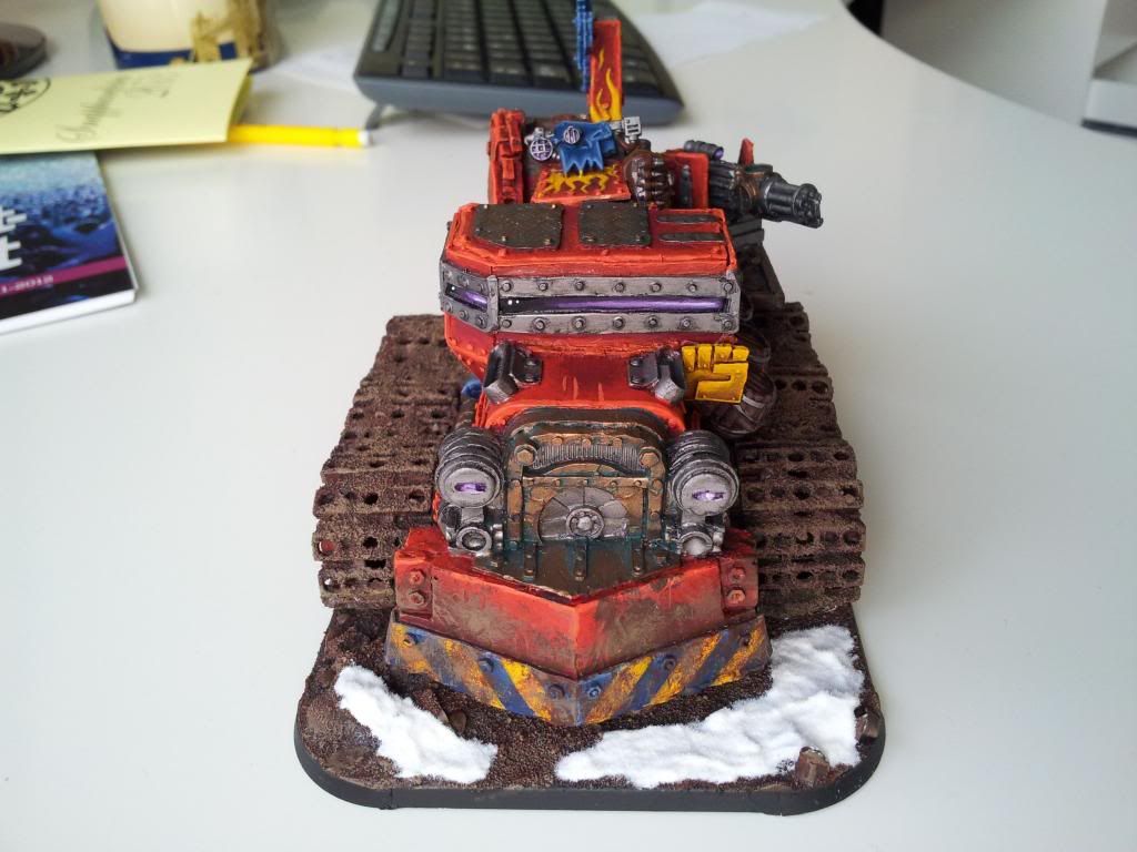 Personally I believe this modell got some great orkification potential, the main problems with it being the way to thin tracks and the quite weedy driver. Solution: Get some bigger tracks and build a cab.