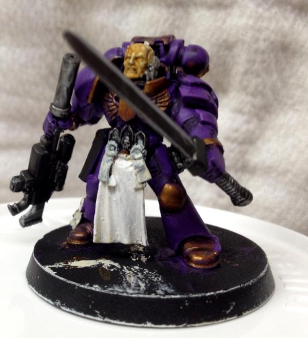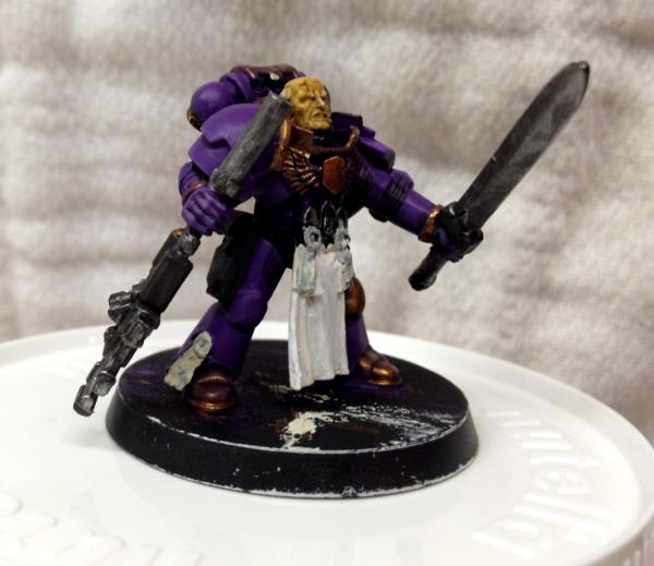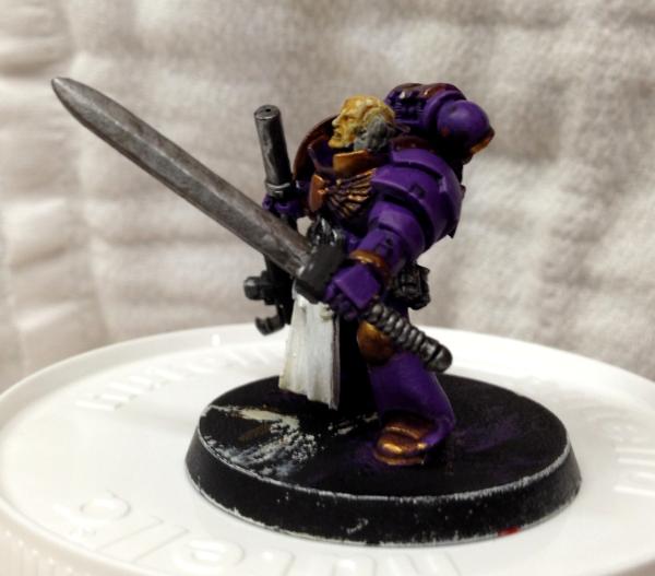 I've struggled a bit with how to represent the sword. It's not a regular powersword so lightning effects are out. At this point I'm thinking the next step is probably to just put some blood/gore on it.