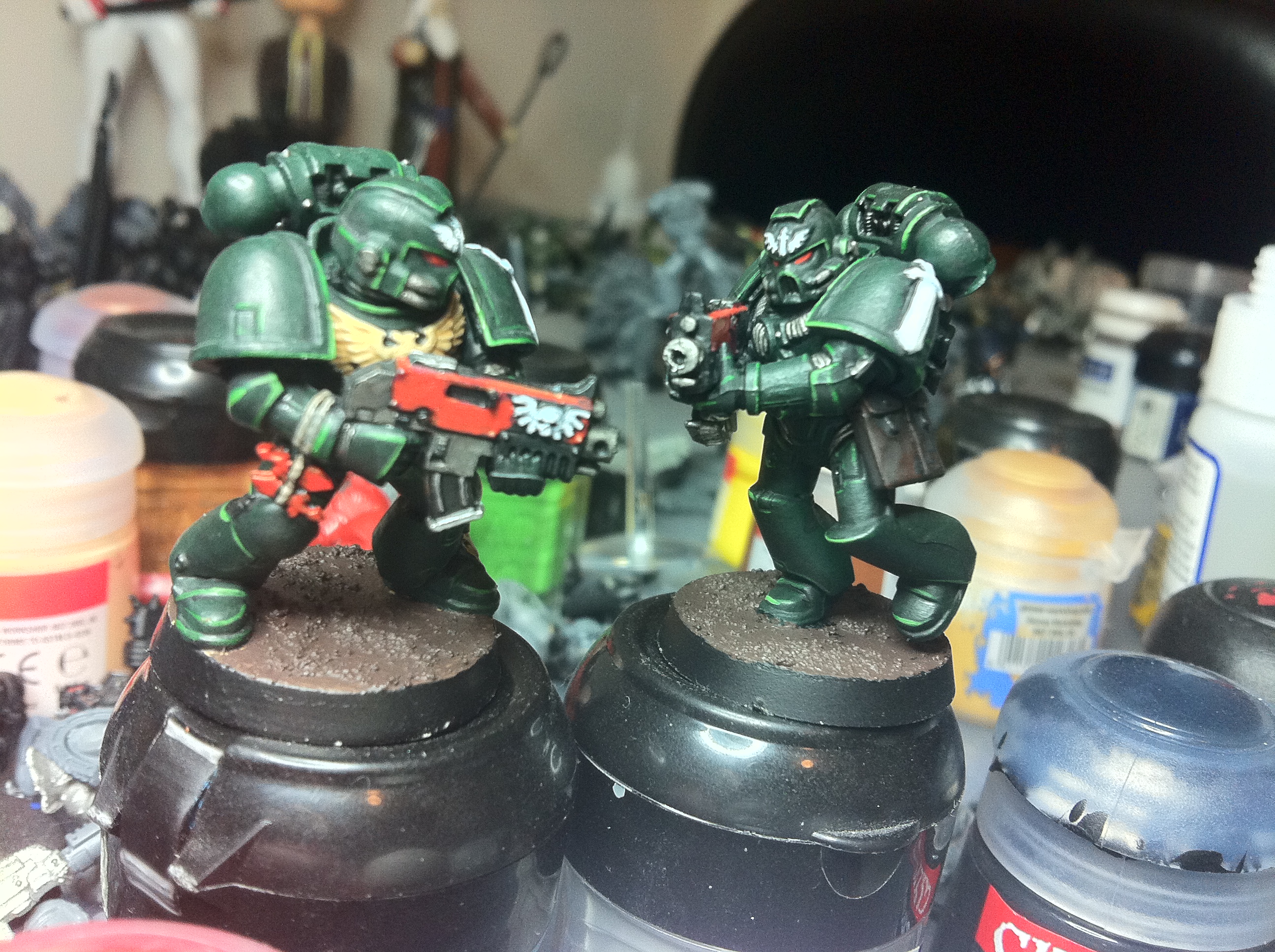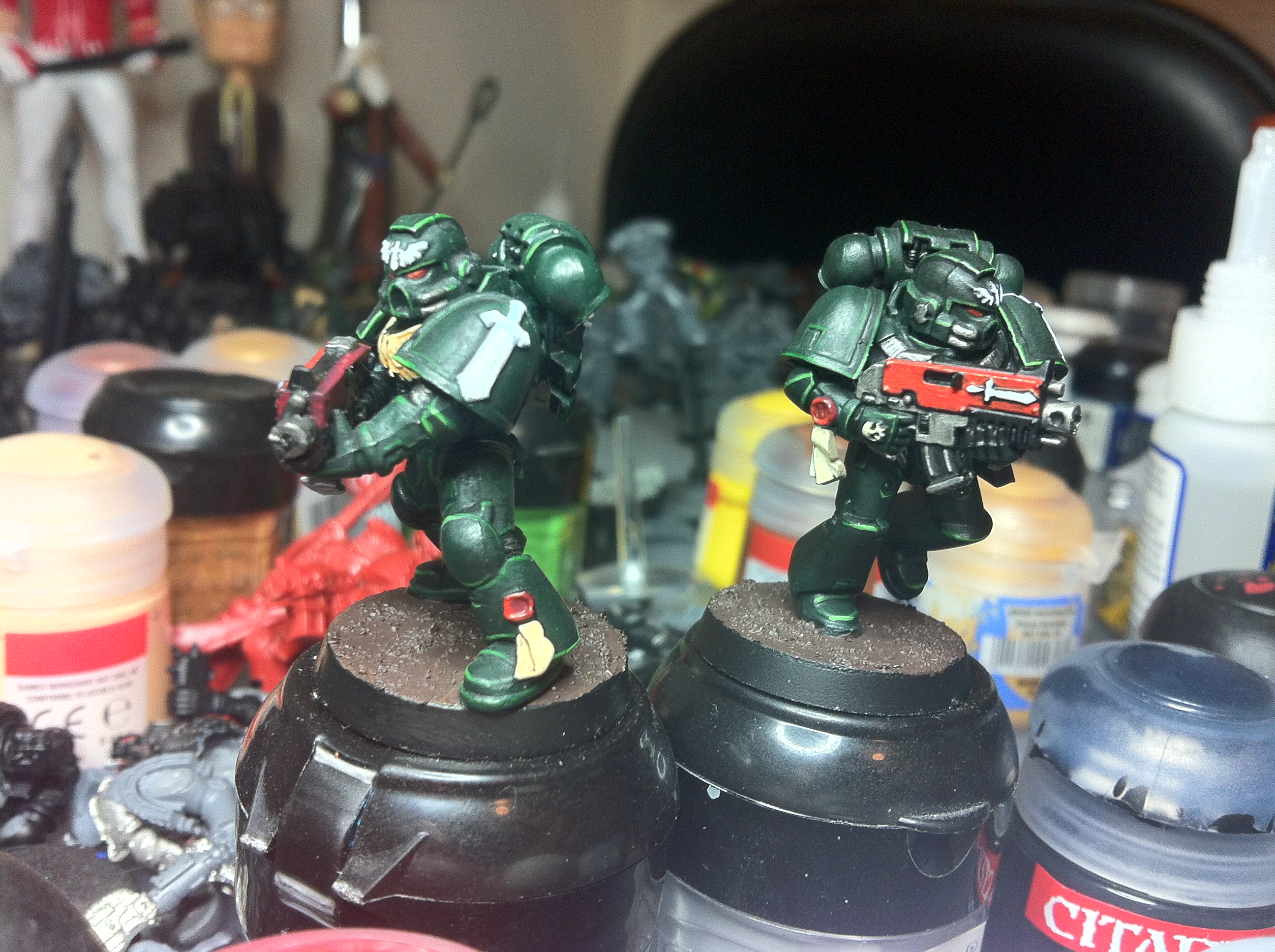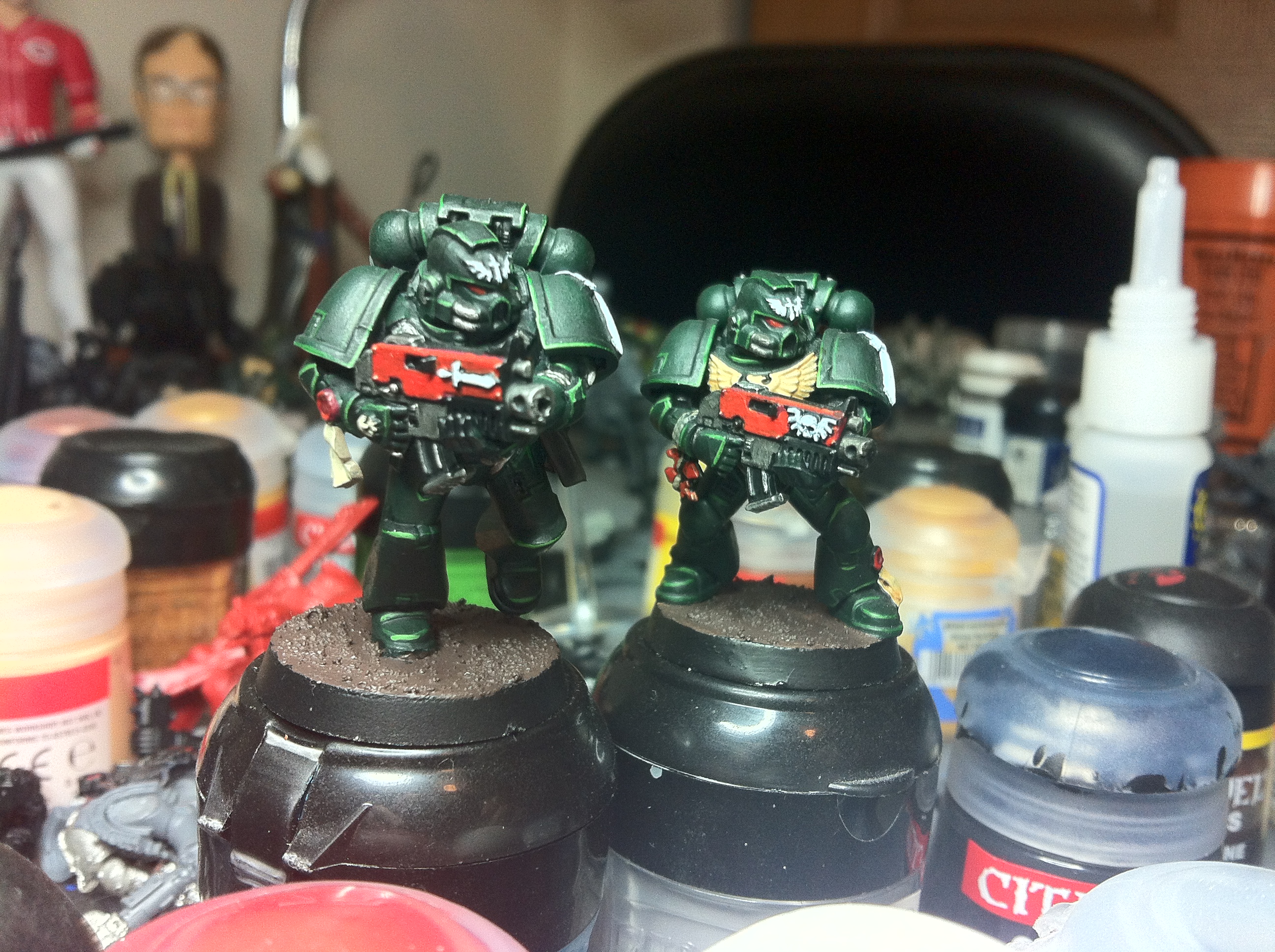 Having some extra models laying around and tons of bits I decided to do up some Dark Angels. I have not had a lot of experince with painting green, but I went at it just as if I was painting any other color. This is what I did, if you have any tips or anything like that please feel free to let me know!