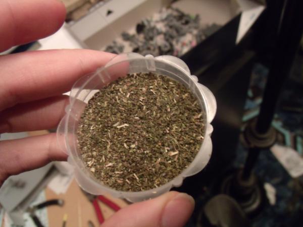 If have a birch tree near by, you can break up its little pine cones into realistic looking leaves. just make sure they are dry.