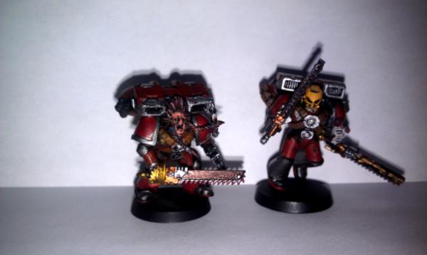 I love the Blood Angels, but I love the name and idea of Knights of Blood a lot more so I decided to switch over to them. Here are the finished product, though I am just too lazy/busy to do the bases, of Knights of Blood. Please let me know what you stand up gents think of them!
