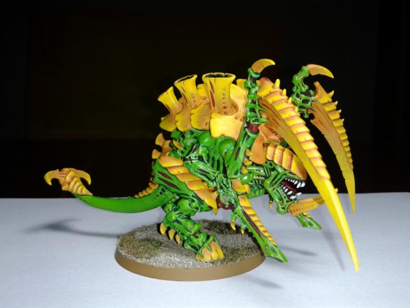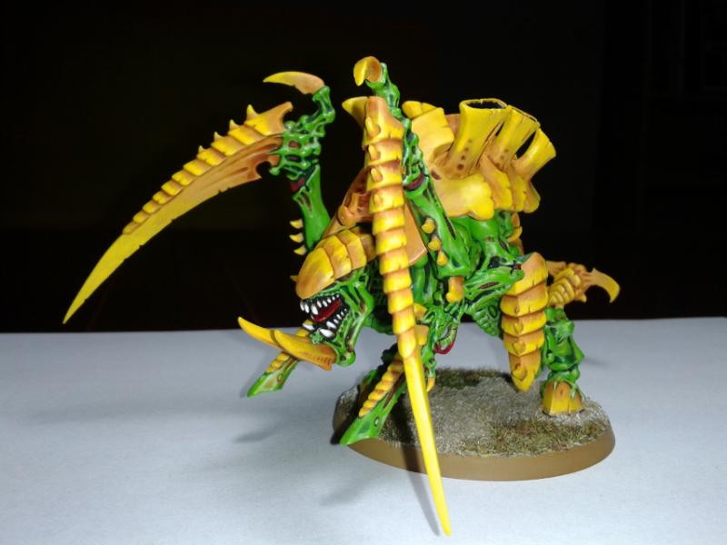 Green and yellow looks very stiking. Fits very well with the organic nature of tyranids.