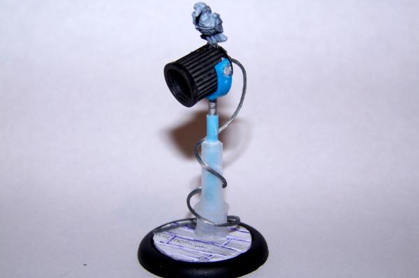 The wife wanted me to make the bases for her Colette crew today. She wants it to look like they are all on stage performing. So wood flooring, done similar to how I made the brick road look on my crew. I think itll look good enough once she paints them. Best of all, one of her doves, we call the boring dove, she wondered if I could do something special to spruce it up. Silly woman. Of course I CAN!! So in staying in the theme of what she wanted, I thought if I could build a stage lamp, that would be the tits. So a little scrounging later, I came up with a pretty neat looking stage lamp, with the Dove perched on top. I must say, I think it looks the gak.