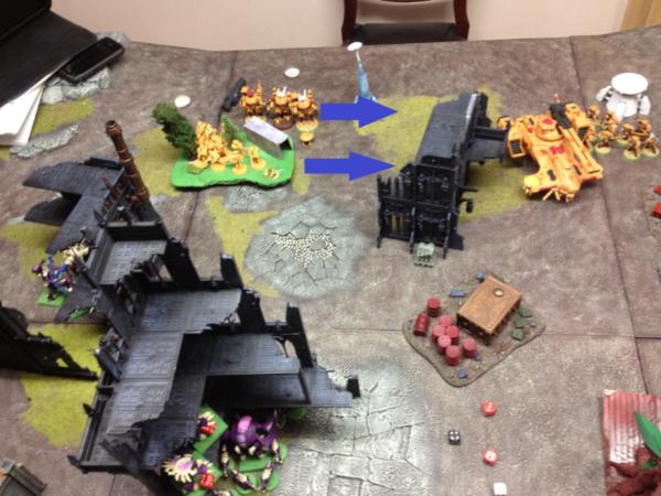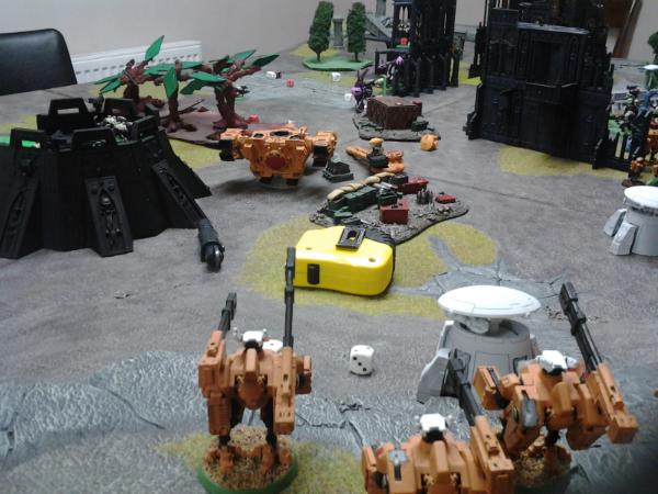 The Broadsides were going to be a big problem however as there was little terrain around them for cover (charge) and they had a good field of fire.