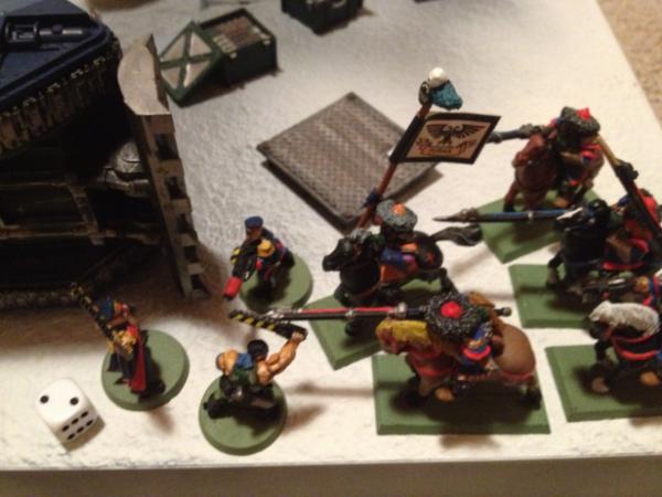 Hand to hand:The Roughtriders and Foots HQ charged the Mechs lone Commander who issued a challenge. The Foots Commander accepted. Only one wound was caused by the Foots Commander but the Mechs held valiantly passing morale.