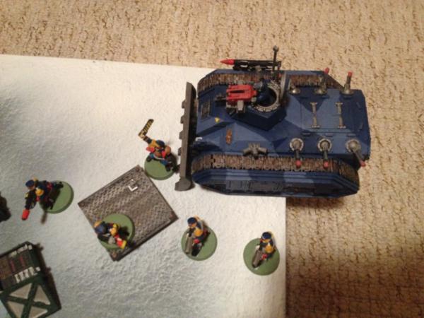 The Chimera tank shocked on from reserve - however it had to stop at the first enemy model under the tank shock rules and as a result its hull was not fully on the board.