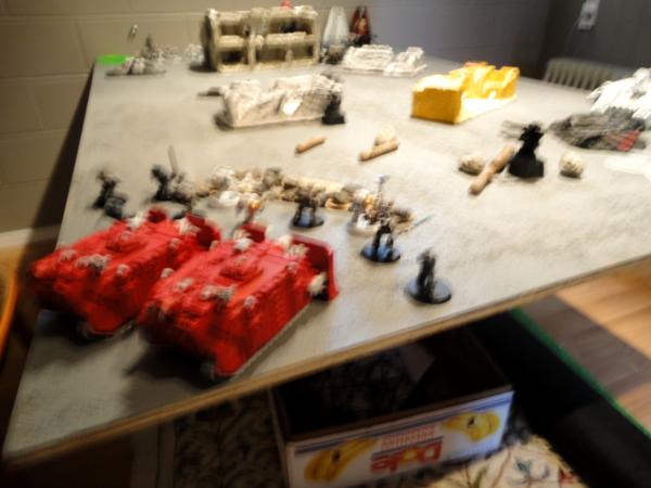 I think the game went well in the end although i think i should have podded in the Sterns instead of the Furioso and combat squaded to kill a unit of termies and a vindi, also would have moved the bikes straight in rather than around, and also hugged cover abit better with the land raider....