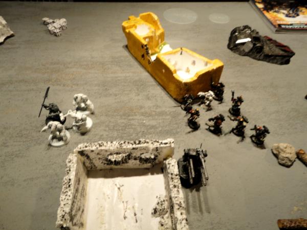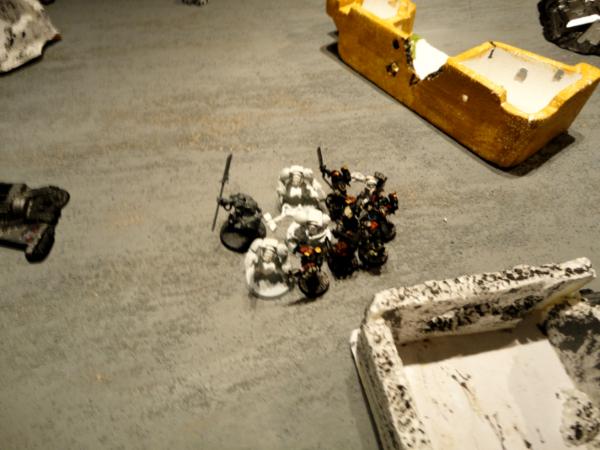 Dread charges the two terminators (they failed their charge last time) and kills both. It then consolidates to hide behind the vindicator.