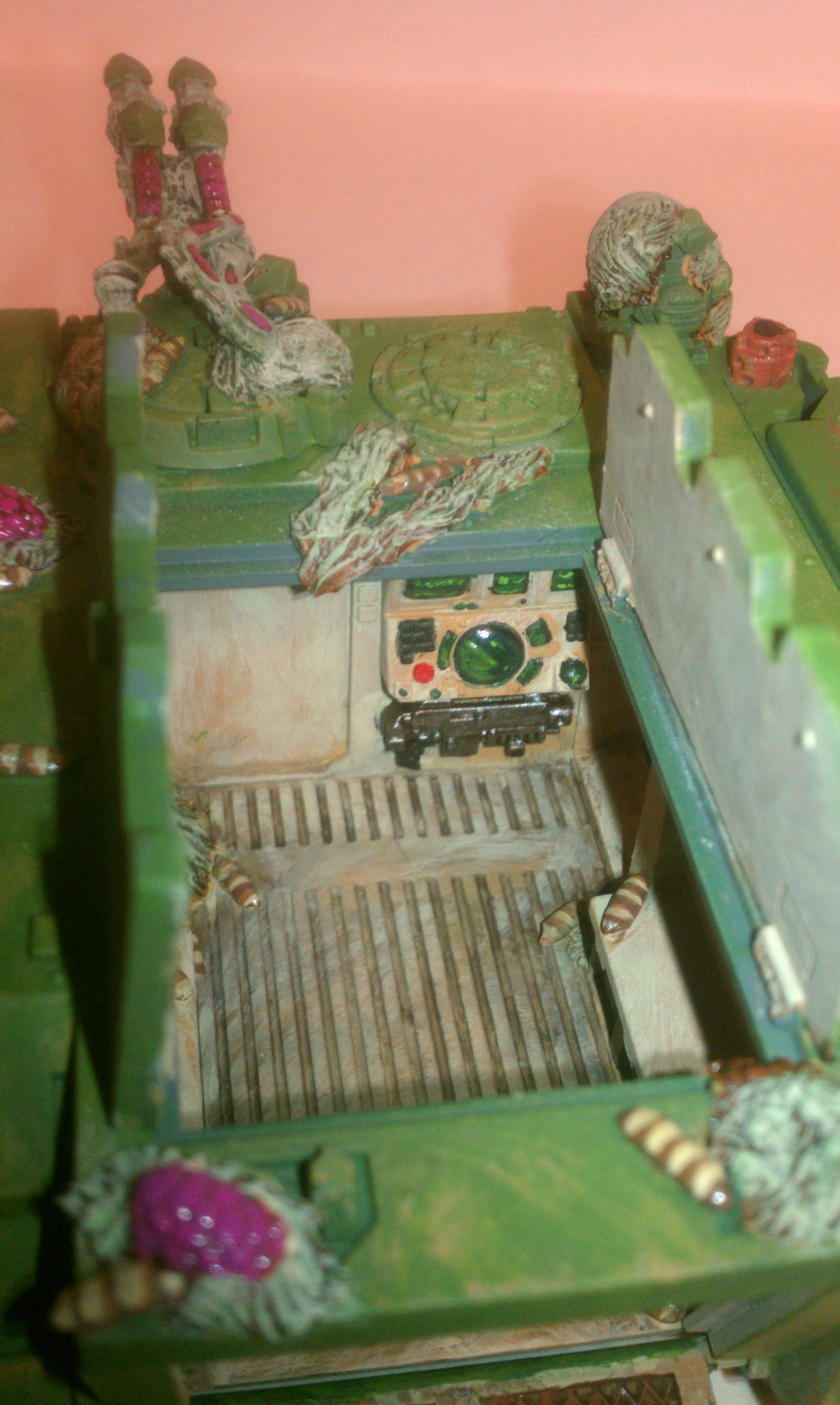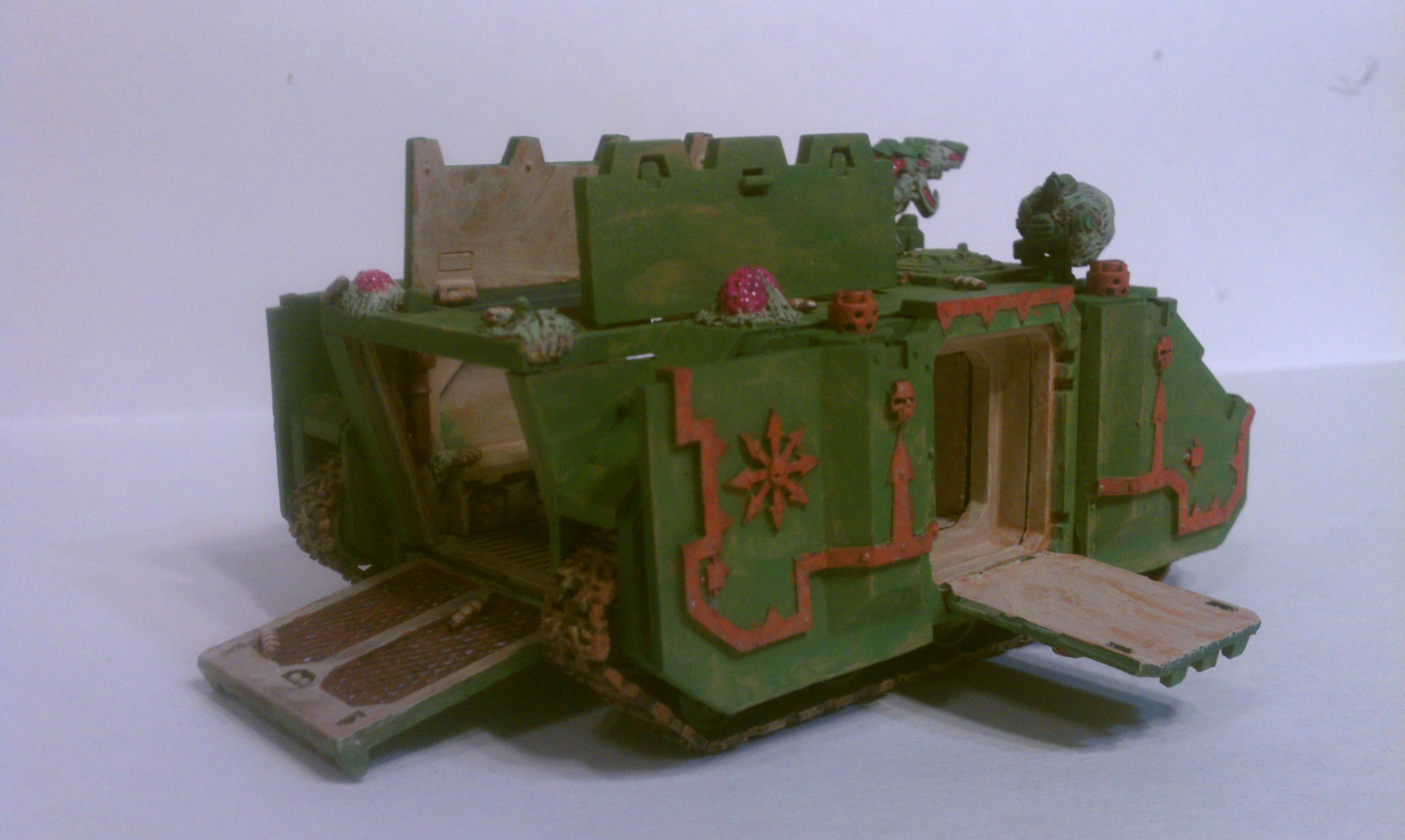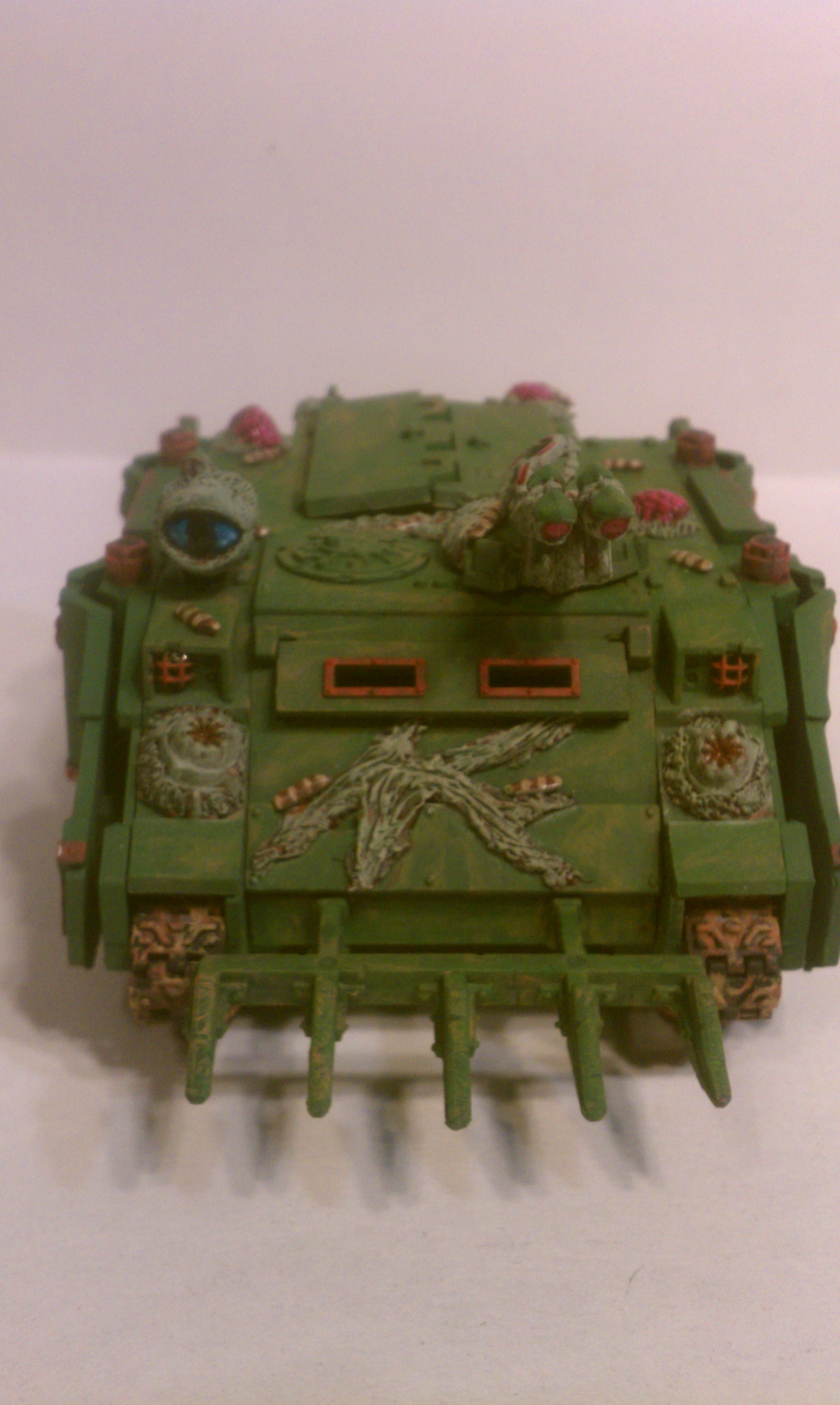 It looks very nurgly with a hint of illumination.  I love that the spotlight is an eye, and how cool the windshields look back-lit.