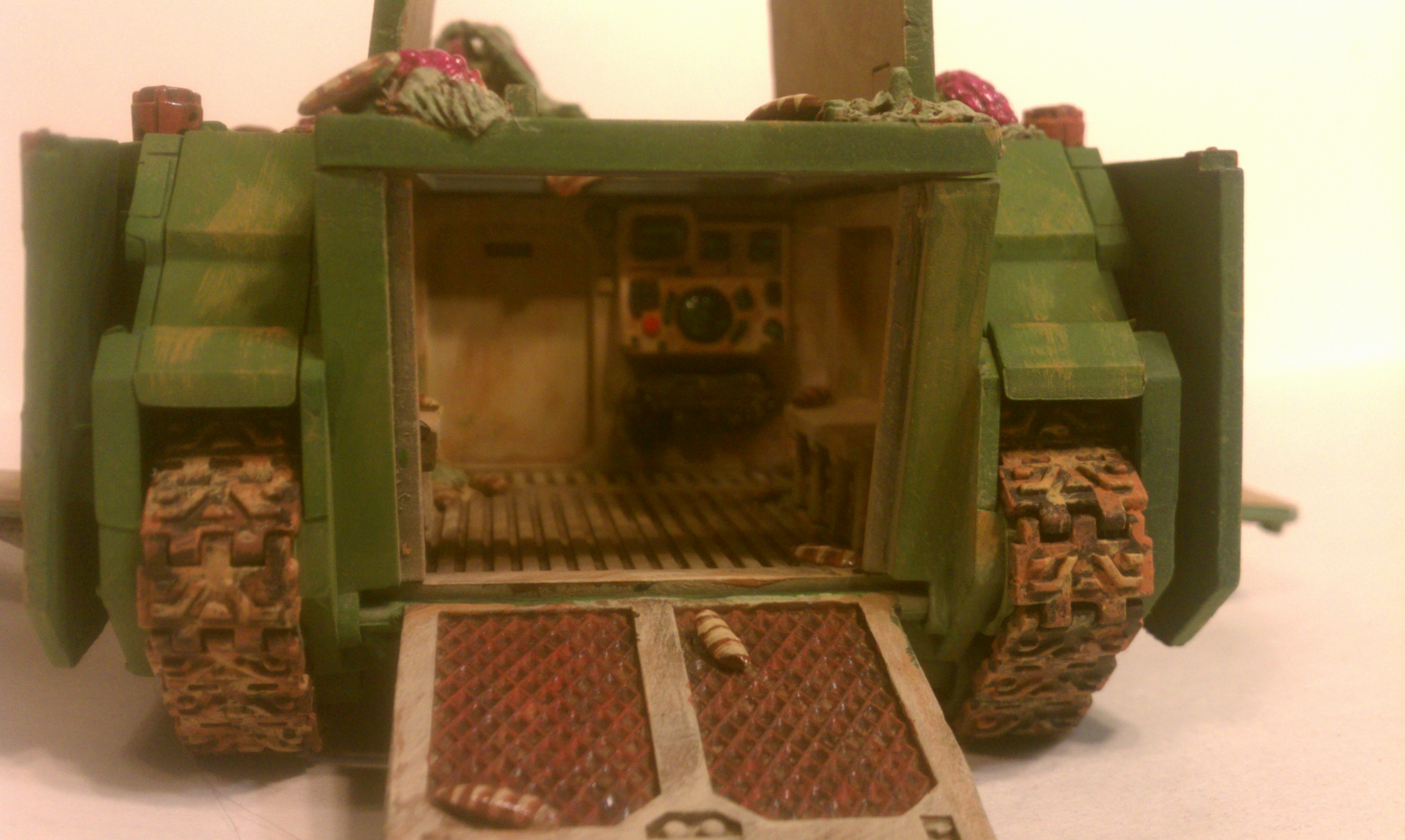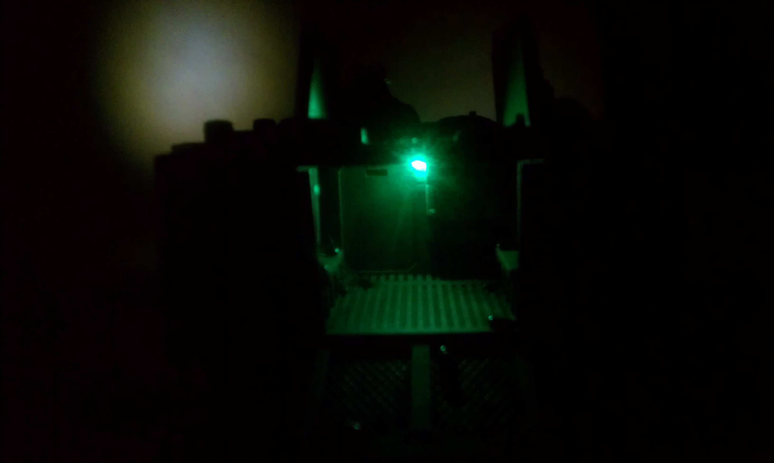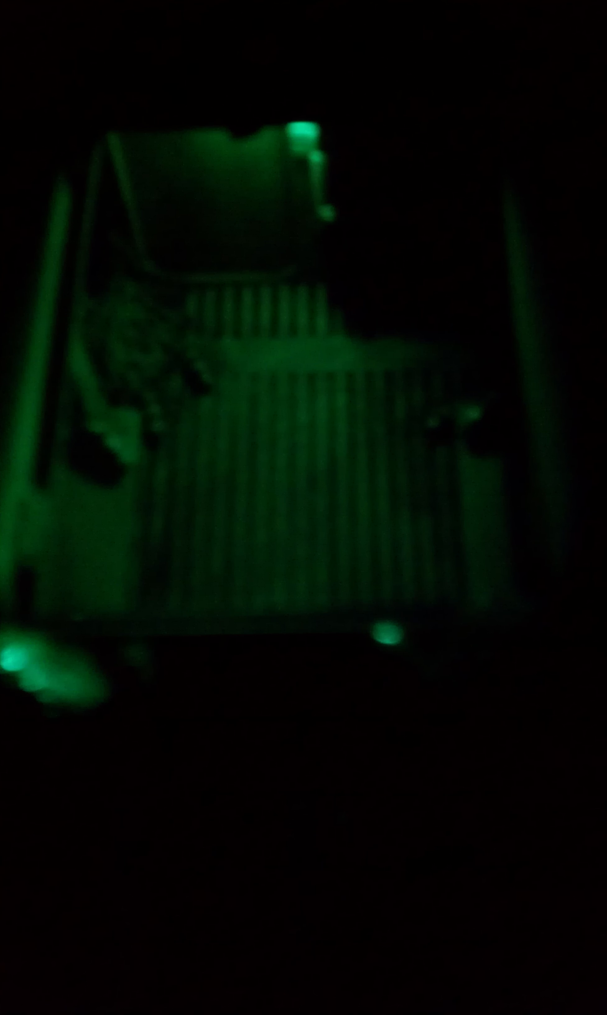 It looks very nurgly with a hint of illumination.  I love that the spotlight is an eye, and how cool the windshields look back-lit.