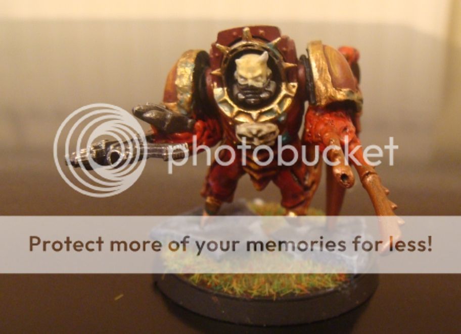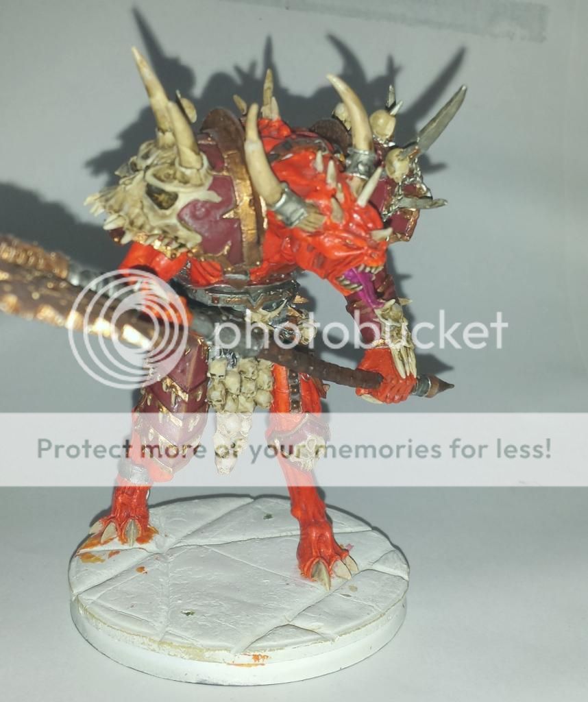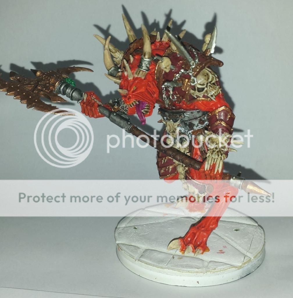 Is the daemon prince finished? I don't know if it's the picture, but I'd put some extra work in the armor, specially the bronze parts. They look a bit plain if compared with the rest of the model - it may be an issue with the picture though.