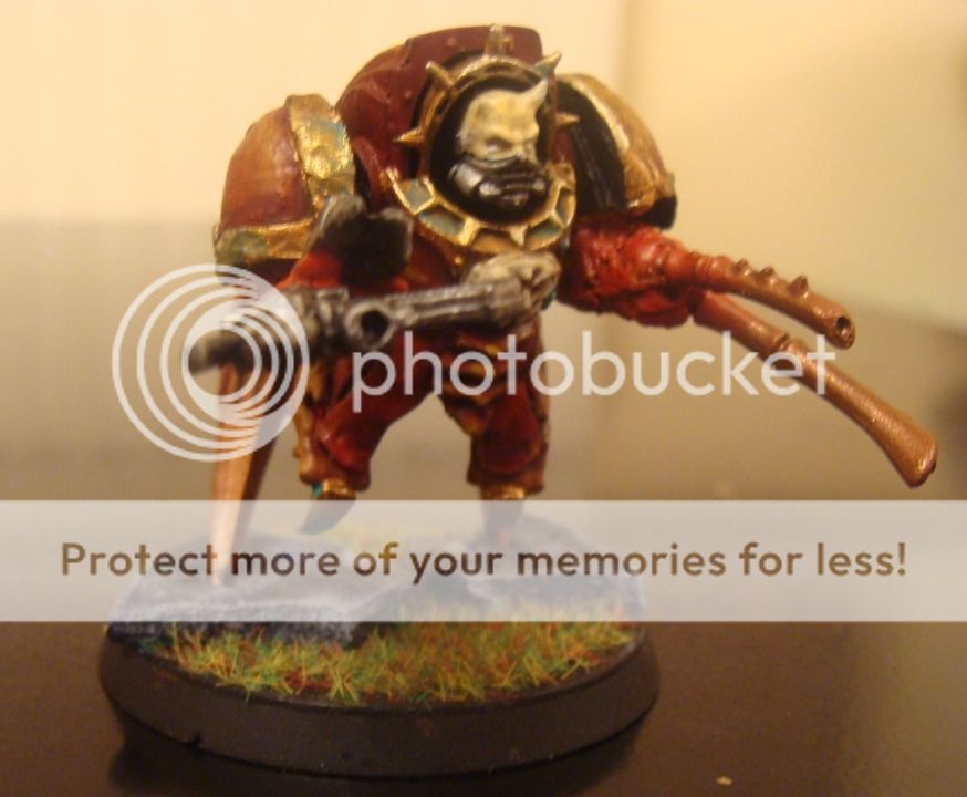 I have put a couple of posts on here before, but have enough models painted now that I thought I would start a blog. There are some great painters on this site, but I'm not one of them, so I'm hoping that this blog will be a place for people to suggest ways to improve my work. Last time I picked up a paintbrush I was about 13 I guess, and after a twenty year break I was bored one day and found myself idly browsing the GW website. I dug some old models out of the loft, ruined them, bought some old chaos terminators off ebay, and I was hooked again. Here's what I have so far!