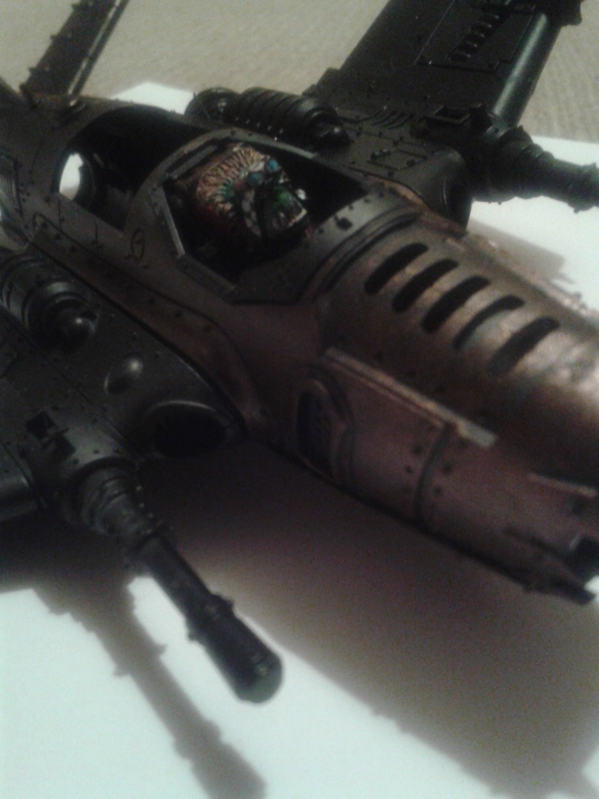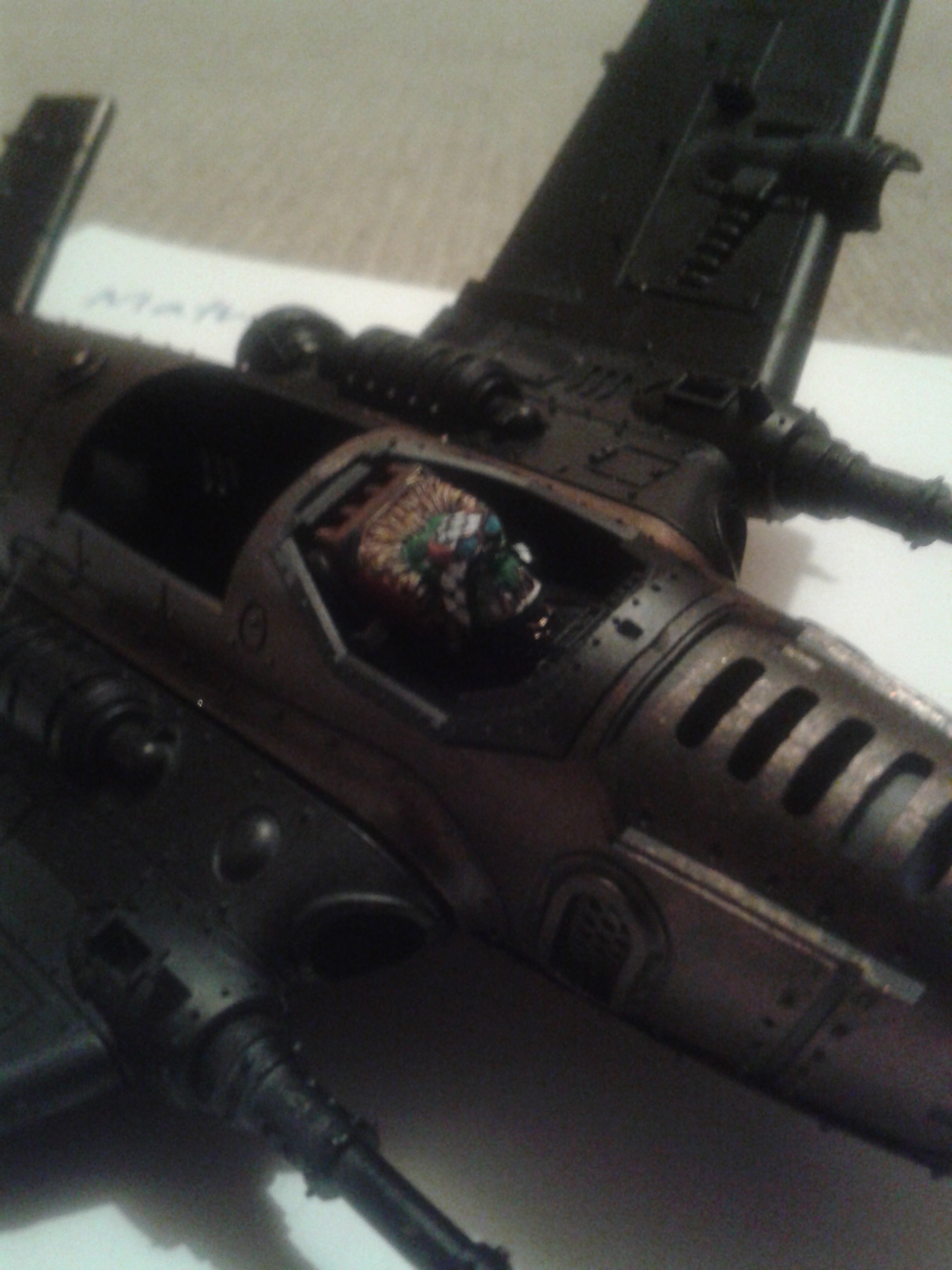 i have undercoated it and dry brushed a base layer of tin bitz, and have started painting the pilot.