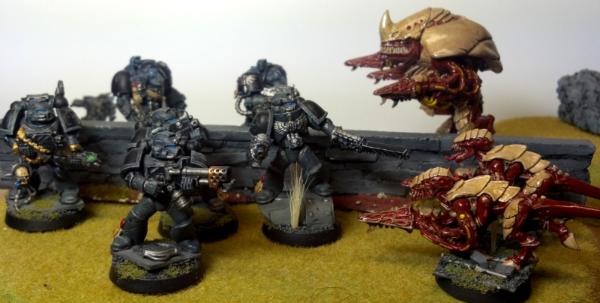Tactical squad, terminators (need bases) and a scout showing off with a side project.