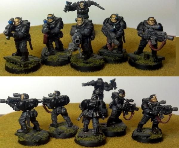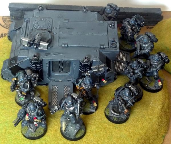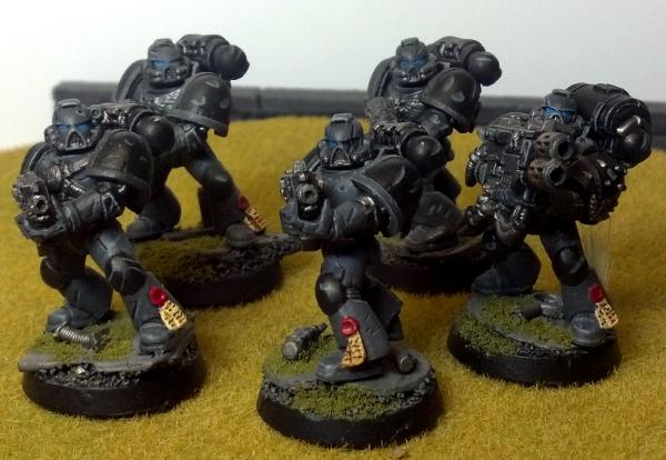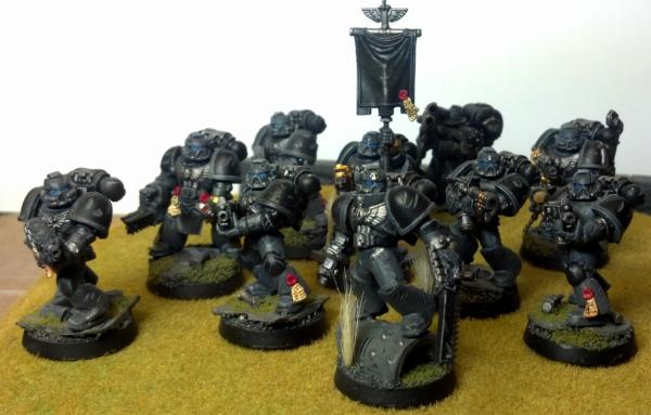 Shadow Knight tactical squad 1. Basically done, though I may add squad markings at some point. The banner is also a placeholder.