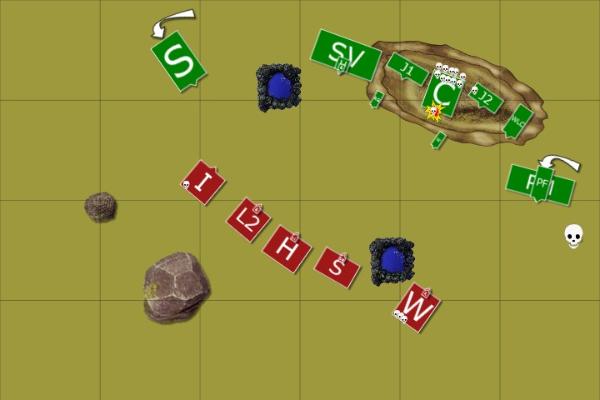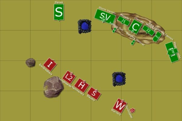 Haskeer, having broken free of his encirclement, stopped his flight and turned to view the field. In a very un-skavenlike display of honour, he resolved to restore control of his army and fight on.
