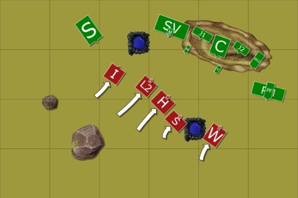 Engaged with the warriors, Kikkit again drew sorcerous energy to himself. He managed to once again augment his monks’ weapons but as he tried to being down yet anther plague on the dwarves Hjalmar muttered his oaths and stifled the priest’s power. The warriors and plague monks continued to hack ineffectually at each other, the monks felling 2 dwarves for 1 loss in return and the fight went on.