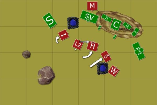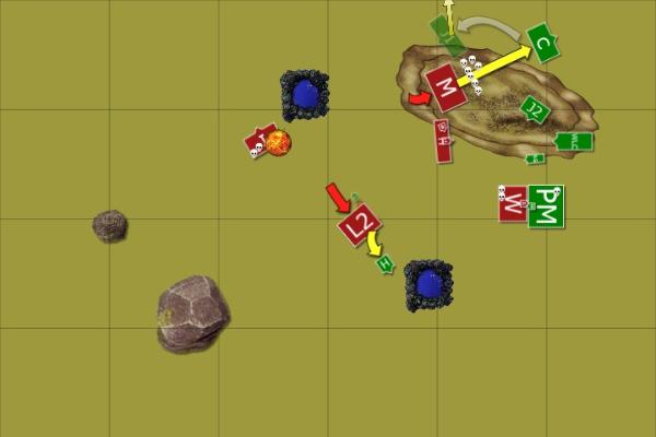 Lakski could see the tide had turned in his favour but he was not done yet, his dwarves had to seize the skaven position to prevent Haskeer’s army rallying to it. He ordered Burnsson’s miners to engage the clan rats holding the summit while he led his hammerers around the bottom to clear out the last of the skaven there. At the same time Hjalmar, seeing the dire situation Grendel was facing decided that now he would give aid and brought his warriors into the fight with the monks.