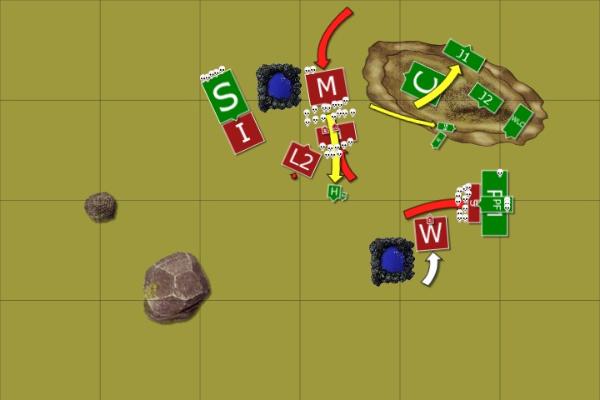 The skaven finally joined battle on their right flank though as the slaves were goaded into the flank of the advancing ironbreakers.