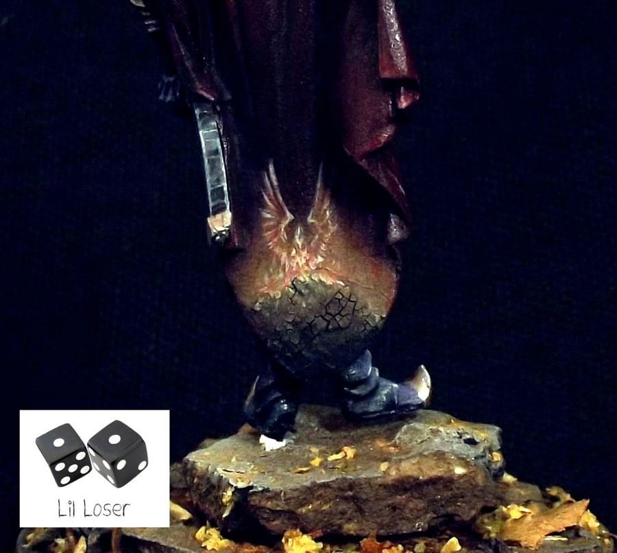 I find it very, very strange that Fulgrim is hands down my least favorite Primarch, and this may very well be my favorite Primarch figure! Excellent job indeed! (I especially love the phoenix on his cloak! Great work!) ((I would like to see a little more of that sword, though. From the other side, maybe? It looks detailed!)