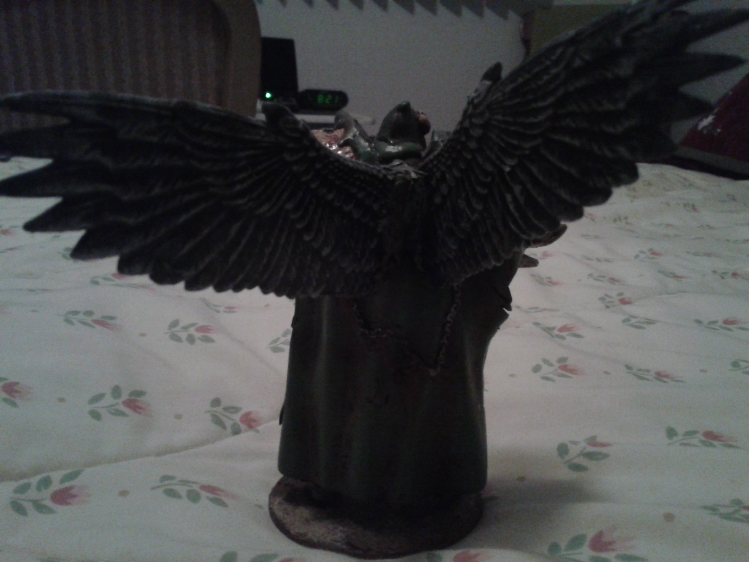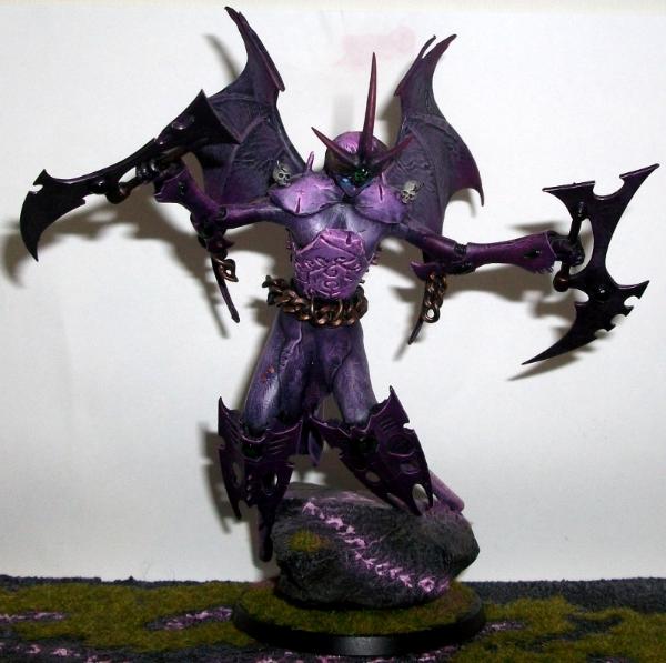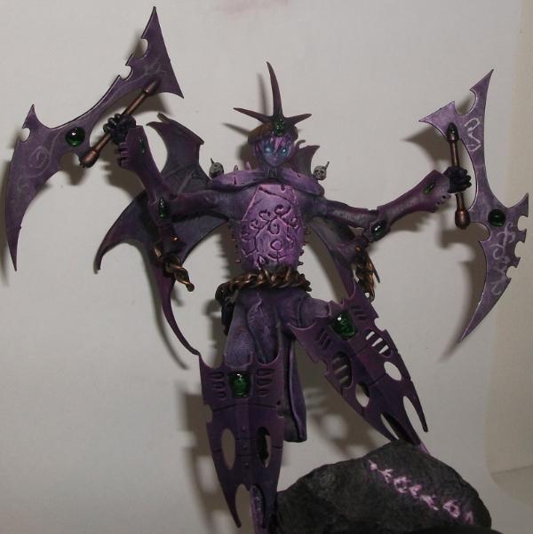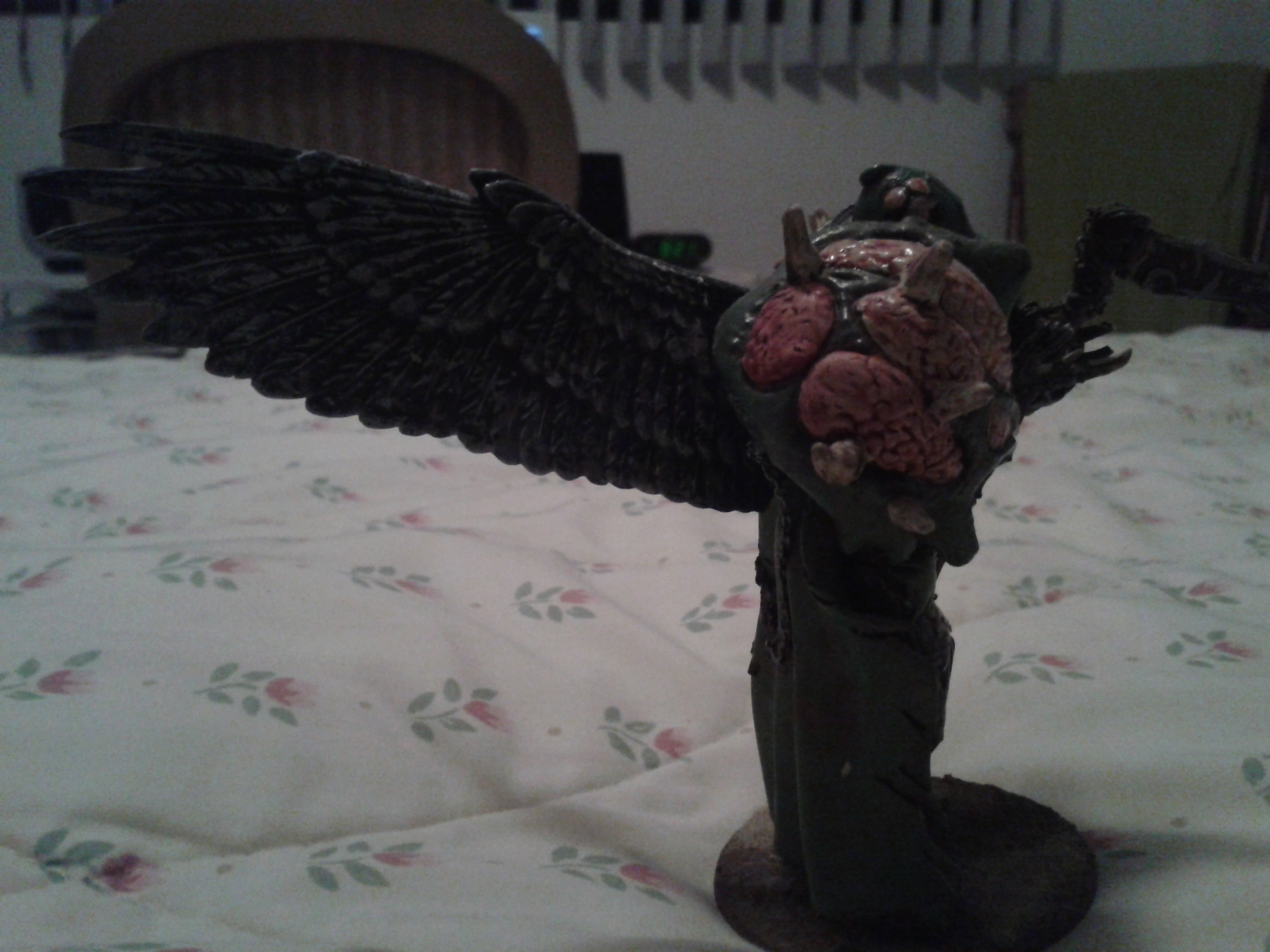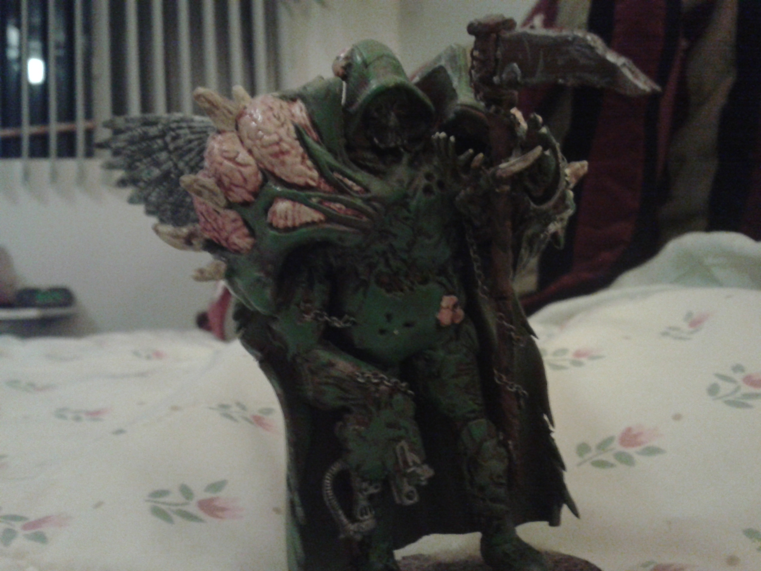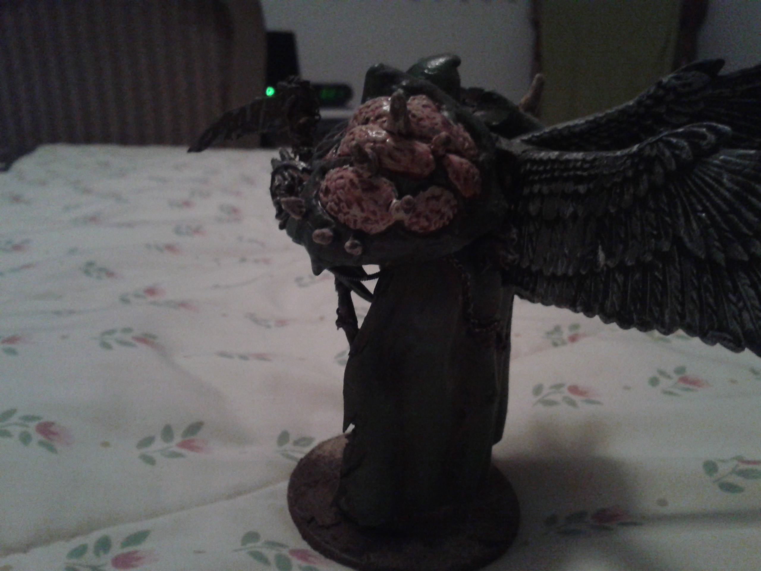 Mortarion, daemon primarch of the death guard. Made from a darth vader action figure. About 4 or 5 inches tall. Head is a jawa action figure with darth vaders rebreather attatched. Wings are from a high elf eagle. Shoulders are from a spawn action figure. The rest of the figure is a lot of chains, bits, greenstuff and plasticard Automatically Appended Next Post: sorry no wip pics